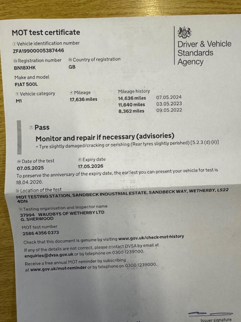 Posting for 4+ years2018 Fiat 500L 1.3 MultiJet Trekking Euro 6 (s/s) 5dr MPV Diesel Manual