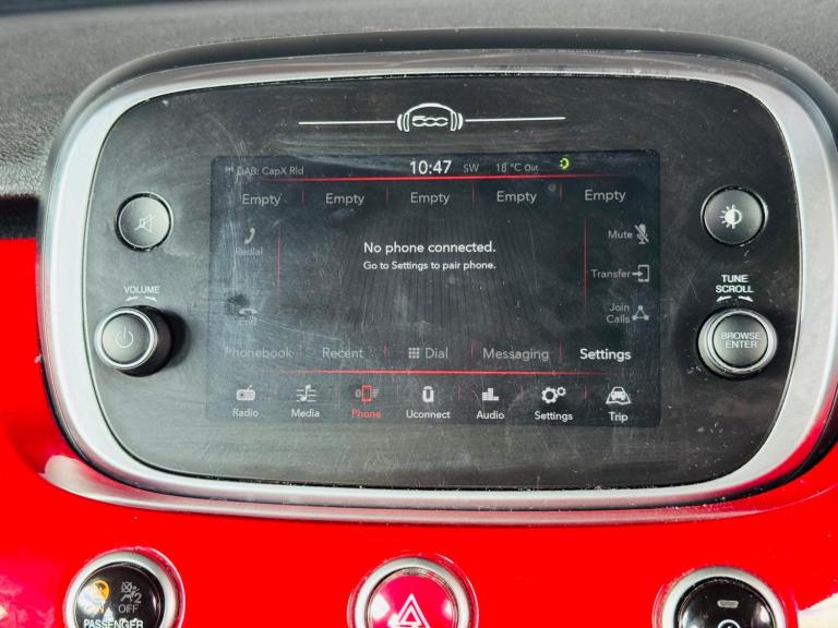 This 2018 Fiat 500X FireFly Turbo City Cross boasts a full service history with its last service completed on 2025-09-10 at 46,354 miles, which is notably low for its age. This Euro 6 compliant 1.0L petrol model, presented in the City Cross trim, offers a 3 month warranty and comes with 12 months MOT provided on purchase. Inside, you'll find comfort and connectivity with automatic dual zone climate control, Apple CarPlay and Android Auto connectivity, and a 7in HD touchscreen DAB radio with Bluetooth, USB, and AUX in. For added convenience, rear parking sensors are also included.The Fiat 500X City Cross is designed to be an economical choice, highlighted by its low insurance group and low CO2 emissions, indicating it is more cost effective to run compared to similar vehicles. This combination of practical features, excellent provenance, and efficient running costs makes it a compelling option for those seeking a stylish and well maintained compact SUV.