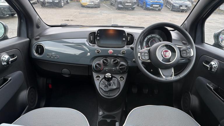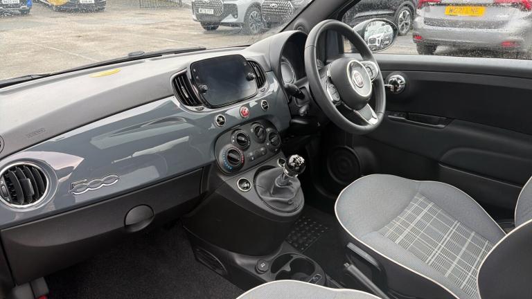 Fitted with the new 1.0 Hybrid Engine, the Fiat 500 hatchback is a stunning city car that offers exceptional economy and high levels of style. Call now to arrange viewing. The 'Lounge' trim looks fantastic with the Chrome Exterior Details and includes as standard a Fixed Glass Sunroof, Rear Parking Sensors, Bluetooth Connectivity and Air Conditioning. 185 litres of luggage space is provided in the boot of the 500 and can be expanded when the rear seats are lowered. A Chequered Cloth upholstery is provided on the Lounge trim and is paired with Leather details on the Steering Wheel and Seat Backs. The rear includes Isofix Points with a Height Adjustable Driver Seat. A 7-inch 'UConnect' display is placed on the dashboard with Bluetooth, USB and AUX media connections. AM/FM radio bands are provided too with Apple Carplay and Android Auto functions.