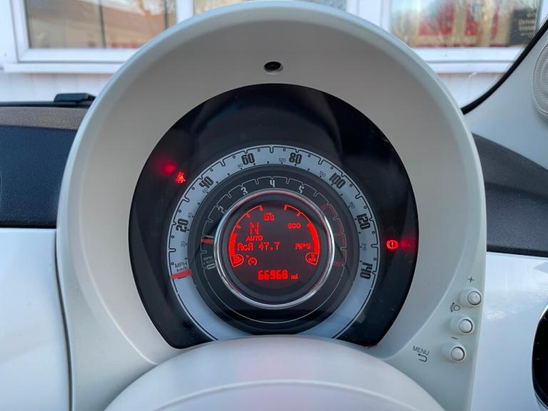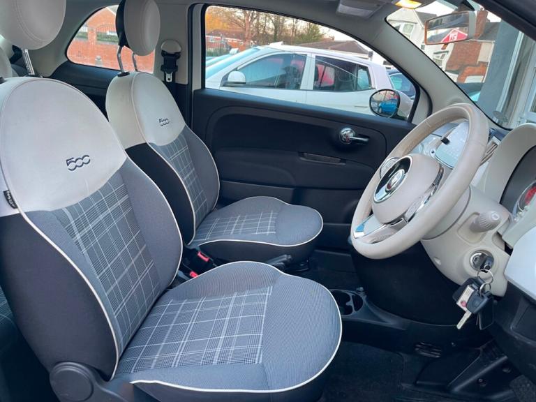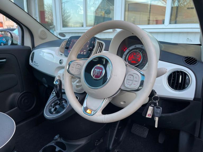 General Vehicle Information Year: 2020 Make: FIAT Model: 500 LOUNGE Engine Size: 1.2L Transmission: AUTOMATIC Body Style: 3 DOOR HATCHBACK Fuel: PETROL MPG: BHP: Registration: DN70KRD Current Mileage: 66967 Number of previous owners: 2 Number of keys:2 V5 Doc: Present MOT Expiration Date: New 12 month MOT Service History: Present Road Tax per year: £195.00 Euro Emission Standard: EURO 6 Don't let it get away! Hold this vehicle with a fully refundable £99 deposit reserve online or call and speak to our sales manager Vehicle Specification: Top 5 Features: Exterior Spec: Interior Spec: service history: Vehicle Purchase Price: £8,995.00 Full Dealer Facilities Buy with confidence All of our vehicles undergo a comprehensive multi-stage quality and safety assurance inspection, ensuring each vehicle meets our high preparation standards before they go on sale. Every aspect of your vehicle is inspected, including: Vehicle Exterior Bodywork, Vehicle Interior Condition, Brake Discs, Pads, Shoes & Drums, Oil Leaks, Gearbox Operation, Steering, Suspension, Engine Performance, Exhaust Condition, Wheel Balance/Tracking Tyre Depths & Pressures, Electrical Systems, Road Test, Many more. Will also come with a up to date service and new 12 month MOT if required. Buy a car online from the comfort of your home No matter where you are, we’ve made it really easy to buy a car online in 3 simple steps. 1:Choose your car Reserve online for £99 or speak to our contact center you can also request a personalized video. 2:Paperwork and payment made easy Complete your deal online, including part-exchange and any finance. 3:Choose your delivery option Contactless Click & Collect and home delivery available. FOR MORE INFO PLEASE CALL OUR SALES TEAM We are open 6 days a week Monday- Saturday 9:00am till 6:00pm. Appointments only Click and Collect Service Available Open to Inspection and Viewing HPI Checks Done on all Vehicles Nationwide Delivery Available England, Scotland and Wales Extended Warranty Available up to 6,12 or 24 Months Warranty policies to suit our individual needs. Talk to one of our highly trained sales Managers to decide what suits you best. Driveaway Cover Available Part Exchange Available Brake down cover Available For more information please call our office on [Phone number removed] or 01902497727 or visit our website / social media @idealcarcentreltd for more photos and info.. 15in Alloy Wheels,50-50 Split Folding Rear Seat with Height Adjustable Head Restraints,7 Airbags,7in HD Touchscreen Radio with Bluetooth - USB and DAB,ABS with EBD,Air Conditioning,Apple CarPlay - Android Auto Connectivity,Automatic Door Locking,Body Coloured Bumpers,Chrome Kit,Chrome Plated Exterior Door Handles,Cruise Control,ESC - Electronic Stability Control,Electric Front Windows,Electrically Adjustable Painted Door Mirrors with Defrosting and External Temperature Sensor,Fix and Go Puncture Repair Kit,Fixed Glass Roof with Sunblind,Fog Lights,Front Seats with Memory Function,Height Adjustable Drivers Seat,LED Daytime Running Lights,Rack and Pinion with Electric Power Steering,Rear Parking Sensors,Remote Central Locking,Speed Limiter,Steering Wheel - Height Adjustment,TPMS - Tyre Pressure Monitoring System,Technoleather Steering Wheel with Audio Controls,Bossa Nova White,Fabric - Black-Light Grey-Ivory with Ivory Ambience