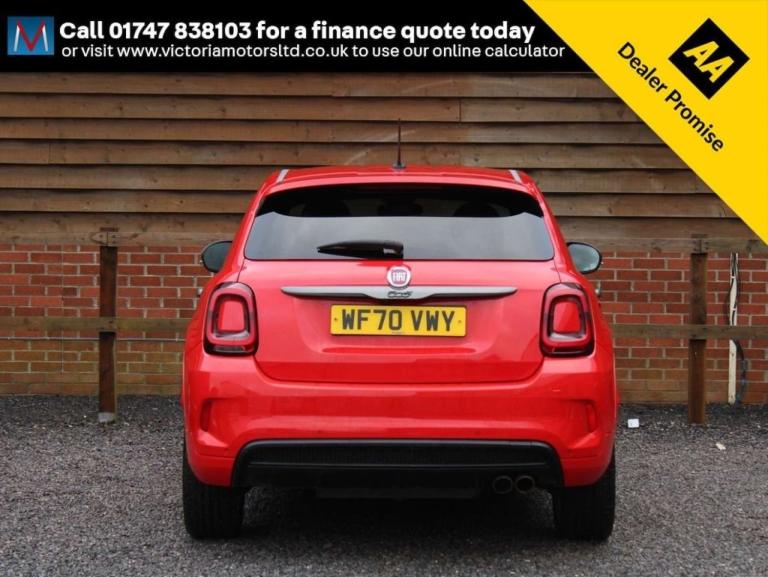 ***FOR VIEWINGS AND TEST DRIVES CALL US ON 01747 838103 TO BOOK AN APPOINTMENT***Stunning looking 500X Sport fitted with Fiat's 1.0 turbo petrol engine producing impressive power of 118 BHP and great fuel economy finished in red with sports exterior body styling, equipment including half leather and suede seats, sports steering wheel with suede speedo lid, rear parking camera, touch screen media unit with satellite navigation, DAB radio and media connections, apple car play where you can mirror the apps from your phone on the cars media screen including Google maps and Spotify, parking aid, bluetooth, auto air conditioning, cruise control, auto lights, alloy wheels and more, 1 owner, 25000 miles, service history, high up driving position with easy access in and out of the cockpit***PART EXCHANGE AVAILABLE***USE THE FINANCE CALCULATOR ON OUR WEBSITE [Website URL removed] AND QUOTE YOURSELF A MONTHLY PAYMENT FIGURE TODAY WITH ZERO DEPOSITS AVAILABLE***