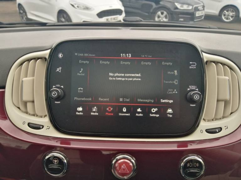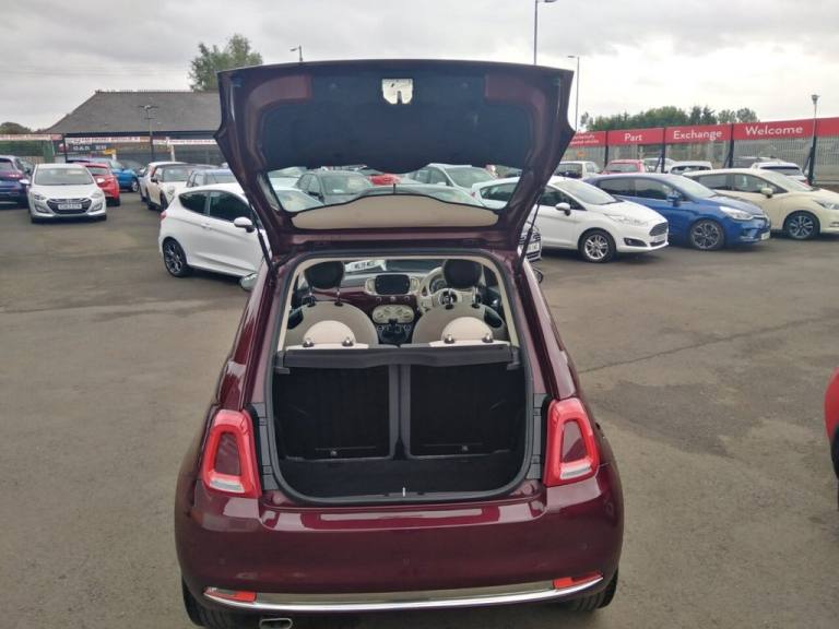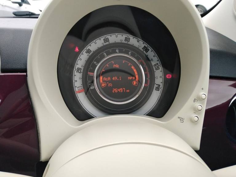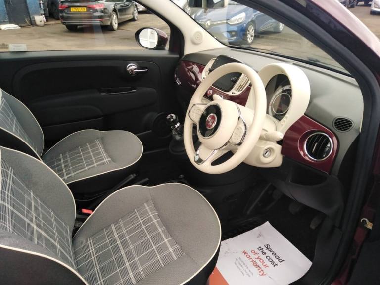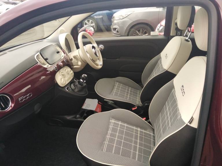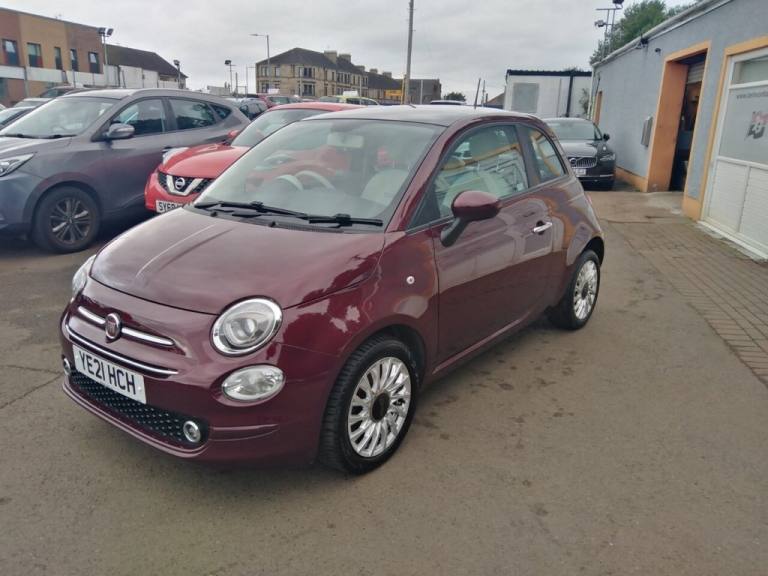 This 2021 Fiat 500 Lounge offers excellent value with a 3 month warranty and 12 months MOT provided on purchase. This stylish city car is equipped with a fuel efficient 1.0L Petrol engine, meeting Euro 6 emission standards. Inside, youll find a 7in HD Touchscreen Radio with Bluetooth, USB and DAB, along with Apple CarPlay and Android Auto connectivity for seamless smartphone integration. Comfort is enhanced by front seats with a memory function, and convenience is assured with rear parking sensors and air conditioning. The Fiat 500 Lounge stands out with its impressive fuel economy, achieving up to 53 mpg, which indicates it is more economical than many similar vehicles. Furthermore, its low insurance group and low CO2 emissions highlight its cost effectiveness and environmental consideration compared to other cars in its class. The car will be offered with a Free RAC inspection, Free 1 Yr MOT, Free RAC Warranty and Free 1Yr RAC Recovery package. We also offer finance packages to suit most credit profiles, for a free finance check apply online now at [Website URL removed] Please see our terms and conditions and status disclosure. .15in Alloy Wheels, 50-50 Split Folding Rear Seat with Height Adjustable Head Restraints, 7 Airbags, 7in HD Touchscreen Radio with Bluetooth - USB and DAB, ABS with EBD, Air Conditioning, Apple CarPlay - Android Auto Connectivity, Automatic Door Locking, Avantgarde Bordeaux, Body Coloured Bumpers, Chrome Kit, Chrome Plated Exterior Door Handles, Cruise Control, Electric Front Windows, Electrically Adjustable Painted Door Mirrors with Defrosting and External Temperature Sensor, ESC - Electronic Stability Control, Fabric - Black-Light Grey-Ivory with Ivory Ambience, Fix and Go Puncture Repair Kit, Fixed Glass Roof with Sunblind, Fog Lights, Front Seats with Memory Function, Height Adjustable Drivers Seat, LED Daytime Running Lights, Rack and Pinion with Electric Power Steering, Rear Parking Sensors, Remote Central Locking, Speed Limiter, Steering Wheel - Height Adjustment, Technoleather Steering Wheel with Audio Controls, TPMS - Tyre Pressure Monitoring System