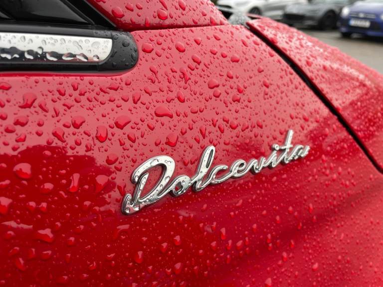 ..Apple car play/Android Auto, Cruise control, External temperature gauge, Power assist steering, Rear parking sensor, Speed limiter, Stop/start system, Trip computer, 4 speakers, Rear speakers, Body colour bumpers, Chrome plated exterior door handles, Dolcevita badge on fender, Dusk and rain sensors, Electric front windows, Front fog lights, Heat insulated glass, Heated rear windows with wash wipe, LED daytime running lights, 1 passenger grab handle, 50/50 split folding rear seats with height adjustable rear headrests, Auxilliary 12V power socket, Chrome kit, Front headrests, Height adjustable drivers seat, Height adjustable steering wheel, Isofix child seat preparation, Techno leather steering wheel with audio controls, 7 airbags - Driver, passenger, side, window and drivers knee airbags, ABS/EBD, ESC + ASR/MSR + HBA + Hill holder, Manual passenger airbag deactivation function, Traction control, Tyre pressure monitoring system, Automatic door locking, Immobiliser, Locking fuel filler cap, Remote central locking