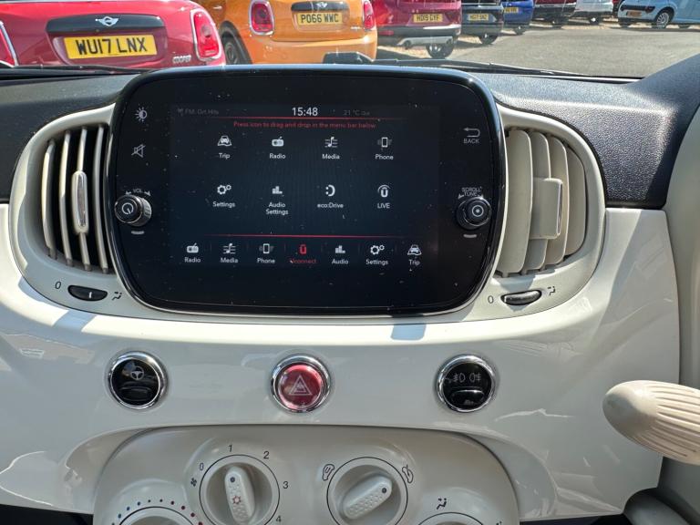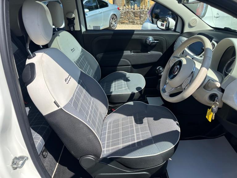 This Fiat 500 was supplied by our local Fiat dealer and has had 1 previous keeper from new. The car is in superb original condition throughout and boats a full service history. Please phone to arrange a viewing., Next MOT due 20/05/2026, Last serviced on 29/05/2025 at 35,003 miles, Full service history, 4 seats, White, Upgrades - Fabric - Black-Light Grey-Ivory with Ivory Ambience, Standard Features - 15in Alloy Wheels, 50-50 Split Folding Rear Seat with Height Adjustable Head Restraints, 7 Airbags, 7in HD Touchscreen Radio with Bluetooth - USB and DAB, Air Conditioning, Apple CarPlay - Android Auto Connectivity, Cruise Control, Electrically Adjustable Painted Door Mirrors with Defrosting and External Temperature Sensor, Fixed Glass Roof with Sunblind, Fog Lights, Height Adjustable Drivers Seat, LED Daytime Running Lights, Rear Parking Sensors, Remote Central Locking, Steering Wheel - Height Adjustment, Technoleather Steering Wheel with Audio Controls, 6 Speed gearbox, 2 Keys, HPI clear, Finance available, Part exchanges preferred