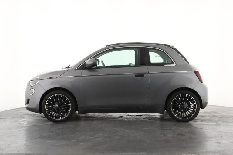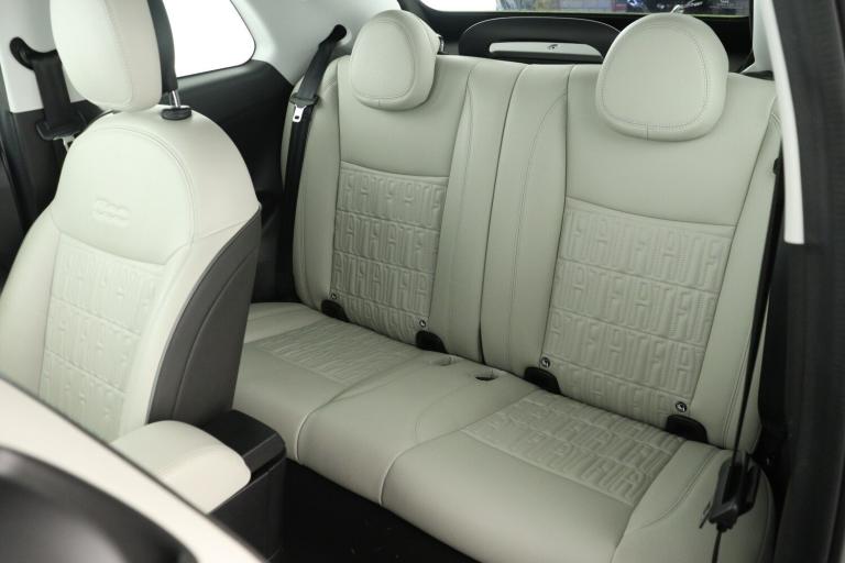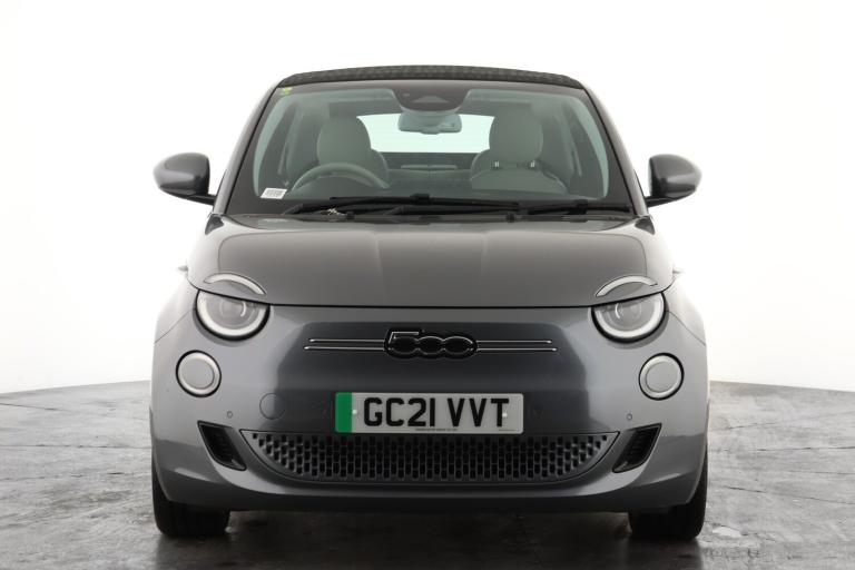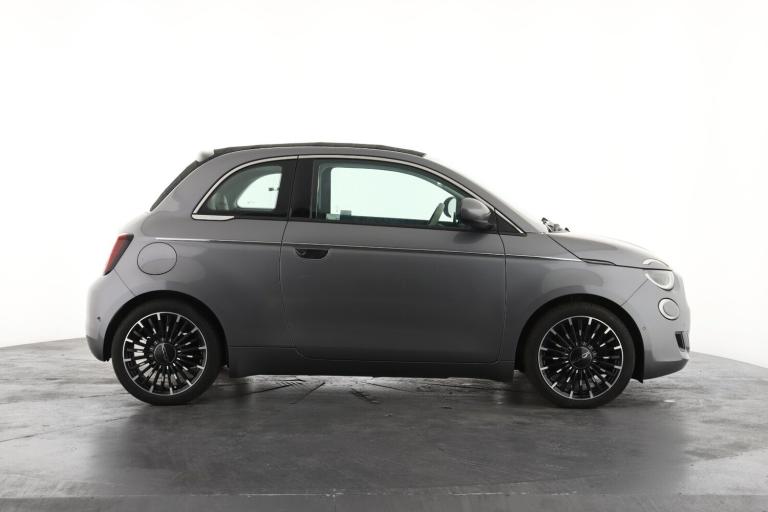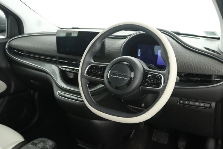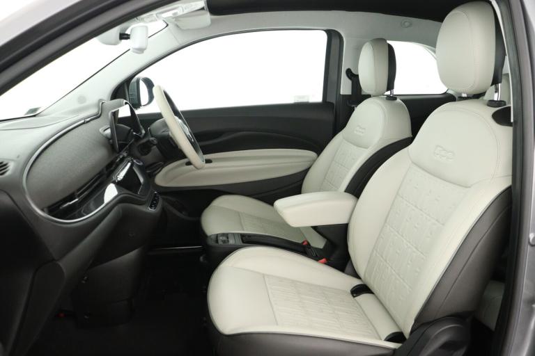 ..10.25'' HD Touchscreen Radio with 3D Navigation, Bluetooth, USB, and DAB, 360 Drone view, 7'' TFT instrument cluster, Apple car play/Android Auto, Attention assist, Blind spot warning, Drowsy driver detection, E-call, EV mode selector, Front parking sensors, Intelligent speed assist, Power assist steering, Rear view parking camera, Traffic sign recognition, Uconnect live service, Vehicle Start Button, Voice recognition, Wireless charging pad, 85kW fast charge, Mode 3 charging cable with bag, 6 speakers, Front USB port, Adaptive high beam assist, Automatic high/low beam, Body colour electric adjustable heated door mirrors, Chrome side mouldings, Chromed daylight opening, Dedicated plate, Door sill kick plates, Driver and passenger's one touch up/down electric windows, Dusk sensor, Electrochromatic rear view mirror, LED daytime running lights, LED headlamps, LED Indicators, LED rear fog light, LED rear lights, LED reverse light, Monogram capote, Rain sensing wipers, Welcome lighting, 50/50 split folding rear seat, 6 way manually adjustable front seats, Automatic air conditioning, Auxilliary 12V power socket, Bi-colour eco leather steering wheel, Cabin pre-conditioning, Centre console storage with sliding and closing door, Eco leather upholstery with Fiat monogram, Front armrest, Front headrests, Front/Rear floor mats with 500 logo, Height adjustable steering wheel, Rear head restraints, Steering wheel with audio controls, 7 airbags - Driver, passenger, side, window and drivers knee airbags, ABS/EBD, Autonomous emergency braking, Brake assist function, Curtain airbags, Electronic parking brake, ESC + ASR/MSR + HBA + Hill holder, Automatic door locking, Immobiliser, Keyless start, Passive entry and wearable key, Remote central locking, 17'' Alloy wheels, Fix and go puncture repair kit