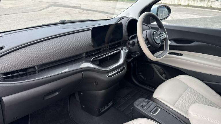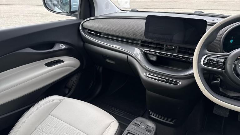 2021 Fiat 500 Electric Hatchback 87kW La Prima 42kWh 3dr Auto (UK Spec)The iconic Fiat 500 goes fully electric with the premium La Prima trim, offering zero-emission driving without compromising style. Powered by an 87kW motor and a 42kWh battery, it delivers up to 199 miles of range (WLTP) and smooth automatic performance, perfect for city life and beyond. The La Prima edition stands out with elegant chrome details, LED headlights, and 17 diamond-cut alloy wheels. Inside, enjoy a luxurious cabin with eco-leather seats, panoramic sunroof, and advanced tech including a 10.25 touchscreen with navigation, Apple CarPlay/Android Auto, and a digital instrument cluster. Safety features include lane assist, adaptive cruise control, traffic sign recognition, and rear parking sensors. Compact, stylish, and packed with innovation—the Fiat 500 Electric La Prima is the ultimate urban EV..Climate Control, Cruise Control, Satellite Navigation, Alloy Wheels, Heated Seats, DAB Radio, Bluetooth, Panoramic Roof, Parking Sensors, Apple-Android Play, Rear Camera& Lane Departure, Floor mats, Velour front/rear floor mats with 500 logo, Smart charging port, Smart charging, Second life ready battery, Bag for mode 3 charging cable, Rain sensing wipers, Rear wiper, Tinted glass, Heated rear window, One touch up/down power windows, Cristalli Atermici, Privacy glass, Heated wiper area, ABS/EBD, Brake assist function, Electronic parking brake, ESC + ASR/MSR + HBA + Hill holder, E-Braking, Autonomous emergency braking for vulnerable road users, Voice recognition, E-call, Wireless apple car play/android Auto, Bluetooth connectivity, Wireless Mobile Phone Charger, Central Console A+C USB (Charging Only), Attention assist, Traffic sign recognition, Power assist steering, Rear view parking camera, Vehicle Start Button, Intelligent speed assist