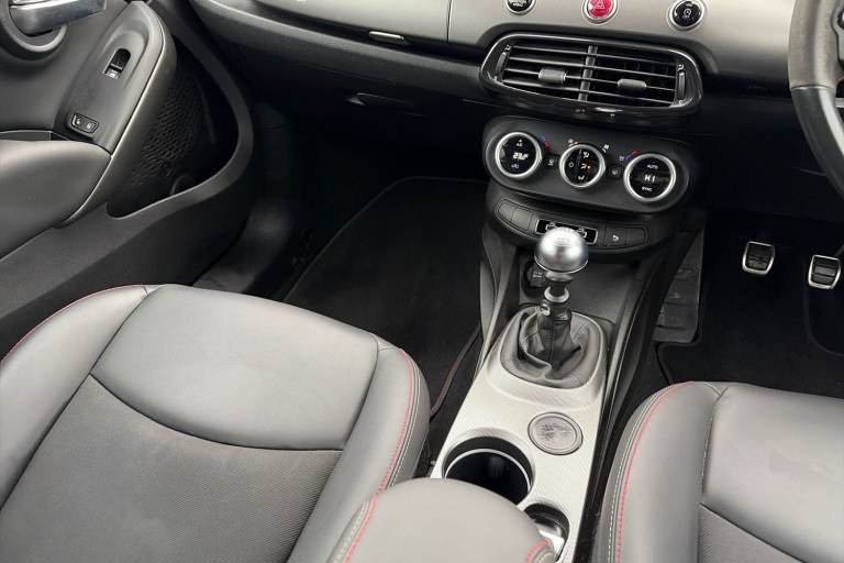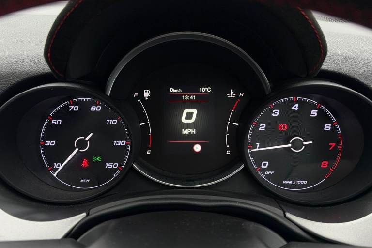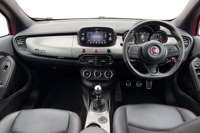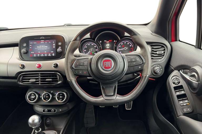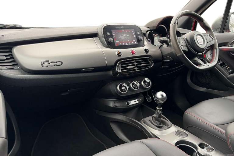 ..3.5'' Colour TFT, 7'' HD touchscreen DAB radio with bluetooth,3D navigation, Aux-in and USB in central tunnel, Apple car play/Android Auto, Lane assist with intelligent speed assist and traffic sign recognition, Power assist steering, Rear parking sensor, Stop/start system, Active roll mitigation, Lower ride height, 2 USB ports, 6 speakers, Body colour bumpers and side skirting, Body coloured wheel arch extensions, Dark grey fog light surround, Dark tinted rear windows, Dual chrome exhaust, Dusk sensor, Electric front and rear windows, Electrically adjustable door mirrors, Halogen headlights and fog lights, Heated rear windows with wash wipe, LED daytime running light and rear braking light, Myron grey inserts tailgate, door handles, front moulding, Rain sensor, Rear spoiler, Rear wiper, Silver Sport badge on fender, 60/40 split folding rear seat, Auto dual-zone climate control system, Auxilliary 12V power socket, Cooled glovebox, Courtesy light on sunvisor, Dark grey headliner and pillars, Front head restraints, Height adjustable steering wheel, Leather wrapped steering wheel with audio controls, Parcel shelf, Rear head restraints, Red stitching on steering wheel, Sports seats, Sport plus pack - 500X, 3x3 point rear seatbelts, 6 airbags - Front, side and window, Electronic parking brake, ESC including ASR, MSR, Hill Holder, ABS, EBD, ERM,DST, BAS, Front and rear seatbelt reminder, Height adjustable seatbelts, Manual passenger airbag deactivation function, Tyre pressure monitoring system, Deadlocks, Immobiliser, Remote central locking, Dark ambient Myron details, Titanium finished dashboard with Myron 500 logo