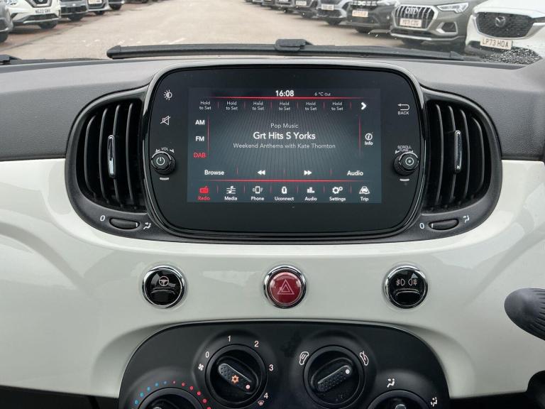 Discover this exceptional 2022 Fiat 500 Dolcevita, boasting remarkably low mileage of just 10,200 miles for its age. This stylish city car is powered by an efficient 1.0 litre petrol engine, meeting Euro 6 emissions standards. Inside, you'll find a comfortable cabin equipped with air conditioning, and the convenience of Apple CarPlay and Android Auto connectivity, all managed through a 7in HD touchscreen radio featuring Bluetooth, USB, and DAB capabilities. Practicality is enhanced by rain and dusk sensors that automatically activate the headlights, ensuring visibility in changing conditions.This Fiat 500 Dolcevita offers significant advantages, highlighted by its impressive fuel economy of 61 mpg, making it an economical choice for your journeys. Its low insurance group rating further contributes to lower running costs, while its low CO2 emissions demonstrate a commitment to environmental consideration. These factors combine to make this particular Fiat 500 a stand out option compared to other vehicles in its class.