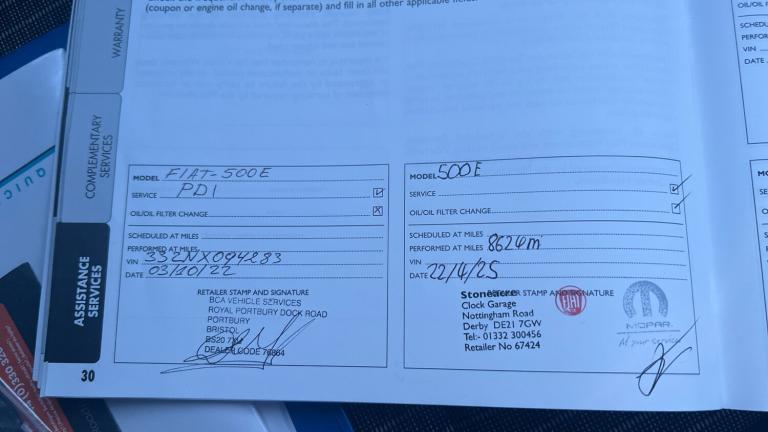 Say hello to pure electric style with a huge dose of Italian flair! This Fiat 500 Electric Icon is the car that proves zero-emissions driving can still turn heads and spark joy. This beautifully modern EV is barely run in and ready to electrify your daily drive.Powered by an 87kW electric motor and a 42kWh battery, the Fiat 500 Electric delivers instant torque, whisper quiet acceleration and smooth, effortless progress. Perfect for urban life, it also offers an impressive real-world range, meaning fewer charging stops and more time enjoying the road. The automatic transmission makes every journey stress free, especially in stop start traffic.Inside, the Icon trim brings a wonderfully modern cabin packed with smart technology. A crisp touchscreen infotainment system with navigation and smartphone integration keeps everything at your fingertips, while the digital driver display delivers key information clearly and intuitively. The seats are supportive and comfortable, and the clever use of space ensures this compact hatch feels surprisingly airy and refined.Comfort is matched by confidence. The Fiat 500 Electric glides over the road with ease, offering a smooth ride and agile handling that makes city driving an absolute pleasure. Thanks to its compact size and excellent visibility, parking and tight manoeuvres are effortless.Safety is front and centre, with advanced systems including lane keeping assist, cruise control and rear parking sensors. It's intelligent protection that works quietly in the background, keeping you safe on every journey.Buying from Vertu Renault & Dacia Derby gives you complete peace of mind. Every vehicle is carefully prepared by trained technicians. Add flexible finance options and exceptional aftersales support, and you're buying with confidence.Stylish, smart and sensationally electric, this Fiat 500 Icon is the perfect way to embrace the future of driving..Smart charging port, Smart charging, Second life ready battery, Bag for mode 3 charging cable, Rain sensing wipers, Rear wiper, One touch up/down power windows, Cristalli Atermici, Heated rear window, ABS/EBD, Brake assist function, Electronic parking brake, ESC + ASR/MSR + HBA + Hill holder, E-Braking, Autonomous emergency braking for vulnerable road users, E-call, Wireless apple car play/android Auto, Bluetooth connectivity, Central Console A+C USB (Charging Only), Voice recognition, Attention assist, Traffic sign recognition, Power assist steering, Vehicle Start Button, Intelligent speed assist, Traffic sign information, Quick Guide English, Lane support system, EV mode selector, 85kW fast charge, Warranty handbook uk, EV Low Battery Mode (Turtle Mode), EV Granted Range (Take Me Home), Connected services, 7"" TFT digital cluster, 10.25"" touchscreen infotainment, Gloss black door mirror caps, Manual dimming interior rear view mirror
