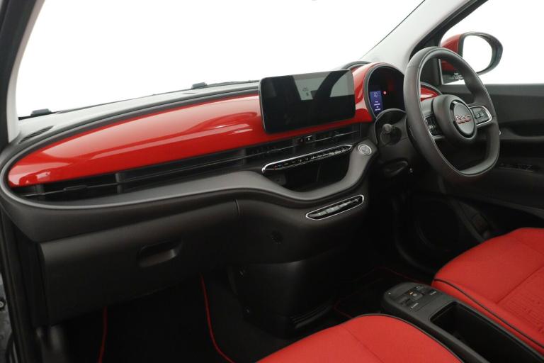 ..10.25'' touchscreen infotainment with navigation, 7'' TFT instrument cluster, Attention assist, Bluetooth connectivity, Cruise control, E-call, EV mode selector, Intelligent speed assist, Lane keeping assistant (LKA), Power assist steering, Traffic sign recognition, Uconnect live service, Vehicle Start Button, Wireless apple car play/android Auto, 85kW fast charge, Mode 3 charging cable, 2x Front USB port, 4 speakers, DAB radio, 3rd brake light, Chromed daylight opening, Drivers one touch power window up/down, Dusk sensor, Electric adjustable door mirrors, Halogen headlamps, LED daytime running lights, LED rear lights, Rain sensing wipers, Rear boot, Red logo on C-pillar, Unique exterior red finished door mirror covers, Unique exterior red finished front logo and moustache, Unique exterior red finished wheel centre hubcaps, Welcome lighting, 2 seat bench in second row, 4 way manually adjustable drivers seat, Automatic air conditioning, Auxilliary 12V power socket, Centre console storage, Eco Leather steering wheel, Fabric upholstery with red dashboard, Front headrests, Height adjustable steering wheel, Rear head restraints, RED kit inclues cabin air filter, antibacterial treatment on surfaces and sanitiser dispenser, Red logo on steering wheel, Single front passenger seat, Specific floor mats with red logo, Steering wheel with audio controls, 7 airbags - Driver, passenger, side, window and drivers knee airbags, ABS/EBD, Autonomous emergency braking, Brake assist function, Curtain airbags, Electronic parking brake, ESC + ASR/MSR + HBA + Hill holder, Front passenger airbag deactivation, Tyre pressure sensor, Automatic door locking, Keyless Go, Remote central locking, 16'' alloy wheels, Fix and go puncture repair kit