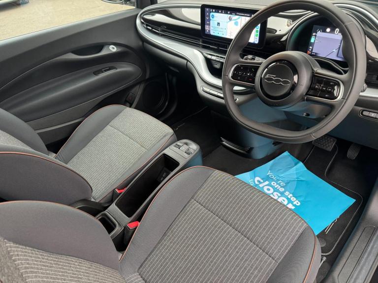 This 2022 Fiat 500e Icon boasts exceptionally low mileage, having covered just 3000 miles, making it a standout choice for those seeking a nearly new electric vehicle. As an electric Icon variant, this 500e offers a substantial 42 kWh battery, providing a maximum range of 199 miles when new. Charging is convenient, with a full charge at home using a 7kW charger taking approximately 6 hours, and rapid public charging can achieve 80% capacity in as little as 35 minutes from empty. Notable features include a Winter Pack with heated seats for comfort in colder weather, a smartphone cradle with Bluetooth for seamless connectivity, and rear parking sensors to aid manoeuvring. Keyless entry adds to the convenience, while wireless Apple CarPlay and Android Auto ensure your favourite apps are readily accessible.The Fiat 500e Icon distinguishes itself with its impressive blend of style and electric efficiency. The low mileage of 3000 miles indicates that this vehicle has been lightly used, offering a driving experience close to that of a brand new car. Its electric powertrain, combined with a 199 mile range and efficient charging options, positions it as a practical and environmentally conscious option for daily commutes and longer journeys alike. The inclusion of features like heated seats, advanced parking assistance, and integrated smartphone connectivity further enhances its appeal, setting it apart from other vehicles in its class by offering a well equipped and comfortable driving environment.