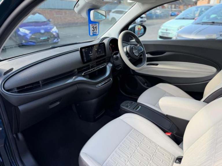 10.25in Infotainment Touchscreen with Navigation, 12V Socket - Front, DAB Radio, E-Call - SOS, Speakers x6, Wireless Carplay and Android Auto, Wireless Mobile Phone Charger, x2 Front USB Ports, Easy Wallbox Home Charging, 360 Degree Parking Sensors, Attention Assist, Blind Spot Monitoring, Cruise Control, EV Mode Selector, Rear Parking Sensors, Rear View Camera, 17in Alloy Wheels, Chrome Exterior Accents, Chrome Window Surrounding, Electric Adjustable Wing Mirror with Defrosting Function, Electric Windows - Driver and Passenger One Touch Up-Down, Dusk Sensor, LED Daytime Running Lights, LED Headlights, LED Rear Lights, 6-Way Manually Adjustable Front Seats, 7in TFT Digital Instrument Cluster, Automatic Air Conditioning, Central Console with Sliding Door Closing Storage Space, Eco Leather Seats, Eco-Leather Steering Wheel, Front Armrest, Keyless Start, Kick Plate, Rain Sensor, Seats - 50-50 Split - Rear, Smartphone Cradle with Bluetooth, Steering Wheel Audio Controls, Vehicle Start Button, Winter Pack, Eco-leather - Beige - Grey Braided Dashboard, Charging Cable - Mode 3, Rack and Pinion with Electric Power Steering, [Safety and Security]ABS - Anti-Lock Braking System, Airbags - Driver, Airbags - Passenger, Autonomous Emergency Braking - AEB, BAS - Brake Assistance System, Electronic Parking Brake, Fiat Co-Driver - Autonomous Driving L2, Intelligent Speed Assist and Traffic Sign Recognition, Keyless Entry, Lane Centering Assist, Eye Park Pack - La Prima, Fiat Co-Driver Pack
