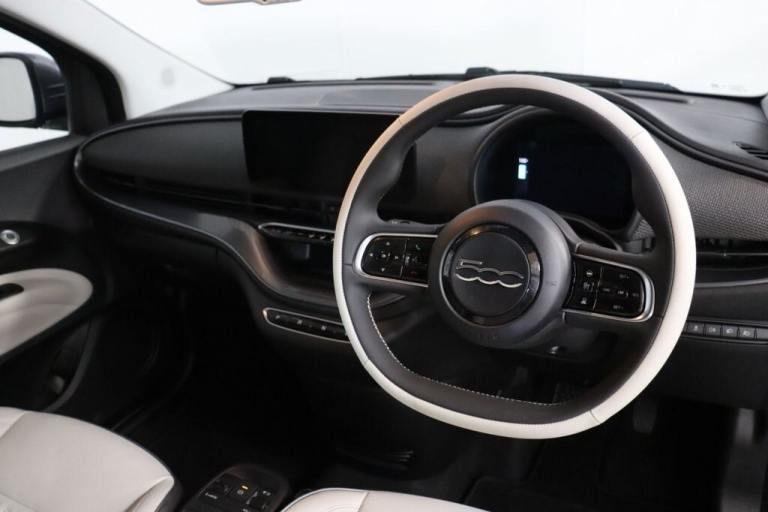 NO BUYERS FEES - One owner, full service history FULL LEATHER APPLE CAR PLAY.10.25in Infotainment Touchscreen with Navigation, 12V Socket - Front, 17in Alloy Wheels, 6-Way Manually Adjustable Front Seats, 7in TFT Digital Instrument Cluster, ABS - Anti-Lock Braking System, Airbags - Driver, Airbags - Passenger, Attention Assist, Automatic Air Conditioning, Automatic High-Low Beam, Autonomous Emergency Braking - AEB, Bi-Colour Eco-Leather Steering Wheel with Audio Control, Central Console with Sliding Door Closing Storage Space, Centre Console with Sliding Door Storage Space, Charging Cable - Mode 3, Chrome Exterior Accents, Cruise Control, DAB Radio, Dusk Sensor, E-Call - SOS, EV Mode Selector, Electric Windows - Driver and Passenger One Touch Up-Down, Electrically Adjustable and Heated Body Coloured Door Mirrors, Electrochromatic Rear View Mirror, Electronic Parking Brake, Fix and Go Puncture Repair Kit, Floor Mats with 500 logo, Front Armrest, Intelligent Speed Assist and Traffic Sign Recognition, Keyless Go, Kick Plate, LED Daytime Running Lights, LED Headlights, LED Rear Lights, Lane Keeping Assist - LKA, Panoramic Sunroof, Passive Entry, Power Steering, Premium Audio System - JBL and Harman, Rain Sensor, Rear Parking Sensors, Seats - 50-50 Split - Rear, Traffic Sign Information, Wearable Key, Wireless Carplay and Android Auto, Wireless Mobile Phone Charger, Mineral Grey, Eco-leather - Beige - Grey Braided Dashboard - Monogram Roof