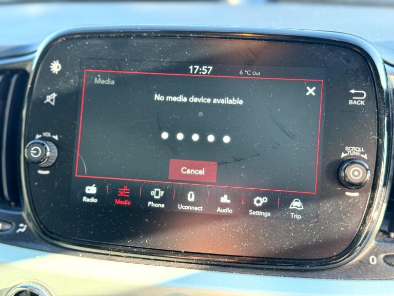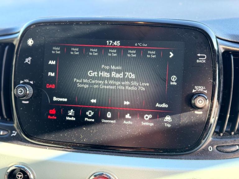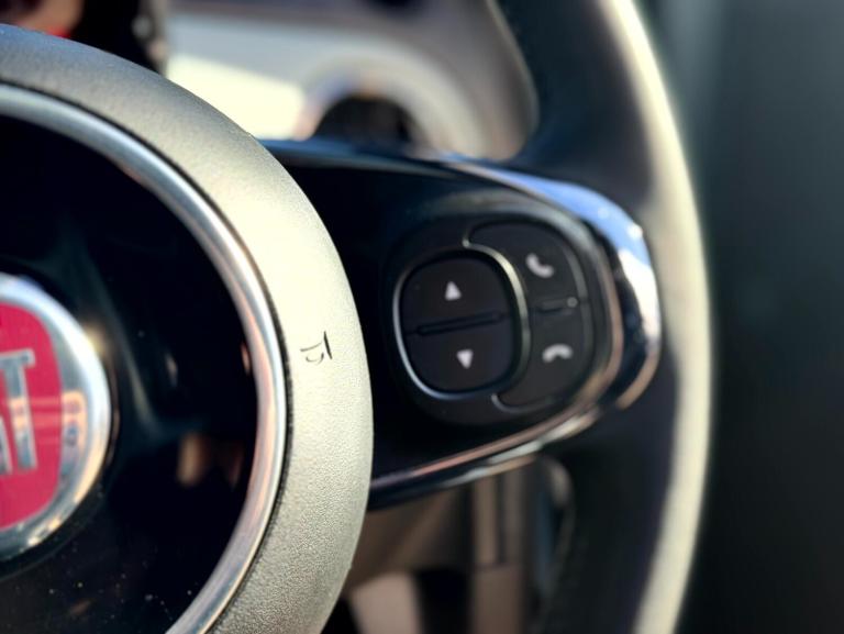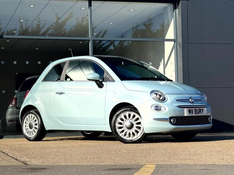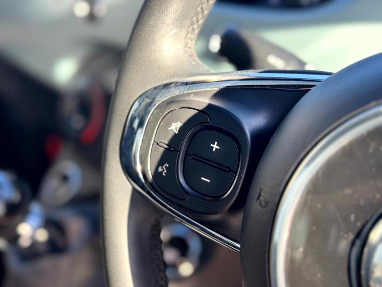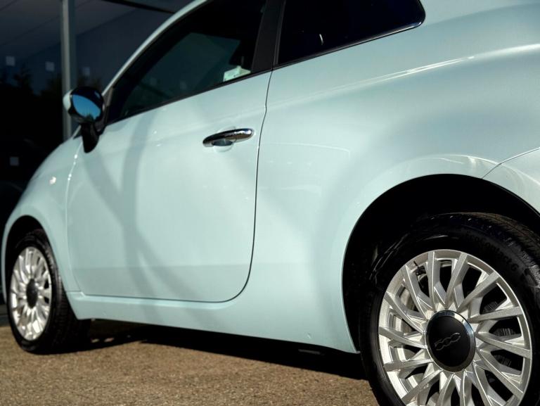 Fiat 500 1.0 Mild Hybrid 3dr.LOW MILEAGE,SPEED LIMITER.Apple car play/Android Auto, Cruise control, E-call, External temperature gauge, Power assist steering, Speed limiter, Stop/start system, Trip computer, 4 speakers, 7'' HD Touchscreen Radio, Bluetooth, USB and DAB, Rear speakers, 3rd brake light, Body colour bumpers, Chrome plated exterior door handles, Electric front windows, Electrically adjustable and heated body coloured door mirrors, Fixed glass roof with sunblind, Front fog lights, Halogen headlamps, Heat insulated glass, Heated rear windows with wash wipe, LED daytime running lights, Rear side wing doors, Rear wiper, 1 passenger grab handle, 2 seat bench in second row, 50/50 split folding rear seats with height adjustable rear headrests, Air conditioning, Auxilliary 12V power socket, Chrome kit, Cloth upholstery, Front headrests, Height adjustable drivers seat, Height adjustable steering wheel, Isofix child seat preparation, Single front passenger seat, Techno leather steering wheel with audio controls, 7 airbags - Driver, passenger, side, window and drivers knee airbags, ABS/EBD, ESC + ASR/MSR + HBA + Hill holder, Manual passenger airbag deactivation function, Traction control, Tyre pressure monitoring system, Automatic door locking, Immobiliser, Locking fuel filler cap, Remote central locking, Body paint dashboard, 15'' Alloy wheels