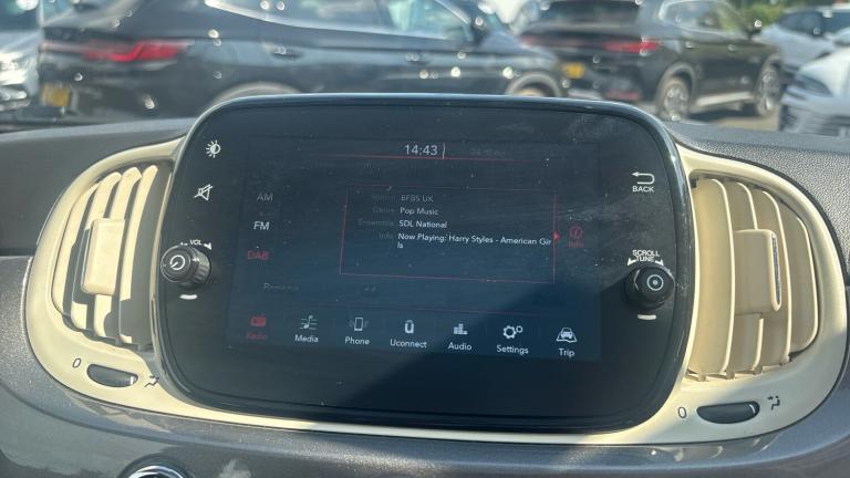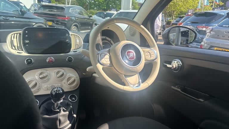 Discover this stylish Fiat 500 from 2023, a car designed for modern driving. This model features a responsive 1.0 litre petrol engine, adhering to the Euro 6 emission standards. Inside, you'll find a fixed sunroof offering a bright cabin experience, complemented by seamless Apple CarPlay and Android Auto connectivity for your smartphone. The car also includes automatic rain and dusk sensors for the headlights, air conditioning to keep you comfortable, and a 7 inch HD touchscreen radio with Bluetooth, USB, and DAB for all your entertainment needs.This Fiat 500 stands out with its impressive fuel economy, achieving up to 61 miles per gallon, which indicates it is more economical than many similar vehicles. Furthermore, its low insurance group rating suggests that running costs will be lower compared to other cars in its class. The vehicle also boasts low CO2 emissions, highlighting its environmentally conscious design and potentially lower tax implications..Air Conditioning, Metallic Paint, Alloy Wheels, Bluetooth, Panoramic Roof, Stop Start, USB, Sun Roof, Apple-Android Play, Auto Lights& Rain Sensors, Electric front windows, Rear wiper, Heat insulated glass, Heated rear windows with wash wipe, Traction control, ABS/EBD, ESC + ASR/MSR + HBA + Hill holder, Apple car play/Android Auto, E-call, Cruise control, Speed limiter, Power assist steering, Stop/start system, Trip computer, External temperature gauge, 7"" HD Touchscreen Radio, Bluetooth, USB and DAB, Body coloured electrically adjustable door mirrors, Electrically adjustable and heated body coloured door mirrors, Body paint dashboard, 4 speakers, Rear speakers, Body colour bumpers, Chrome plated exterior door handles, Rear side wing doors, Fixed glass roof with sunblind, Front fog lights, LED daytime running lights, Halogen headlamps, 3rd brake light, Air conditioning, Height adjustable steering wheel, 1 passenger grab handle