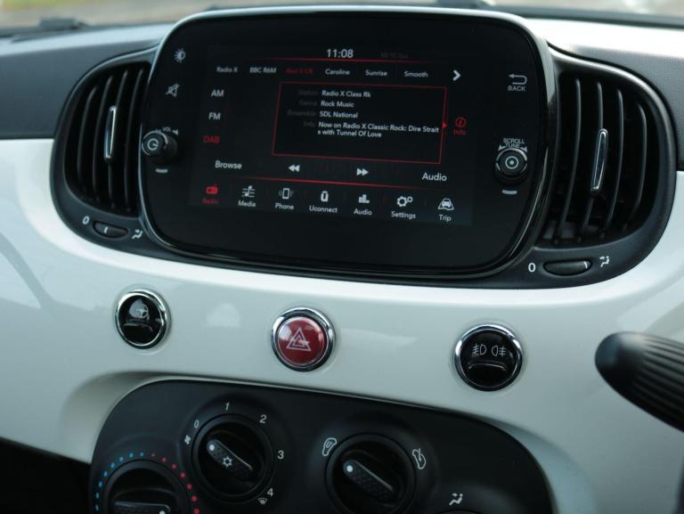 This 2023 Fiat 500 is a superb example, having had only one owner since new. It features a responsive 1.0 litre petrol engine and meets Euro 6 emissions standards. Inside, you'll find comfort and convenience with air conditioning and a fixed sunroof that offers a panoramic view. Stay connected and entertained with Apple CarPlay and Android Auto compatibility, all managed through the 7 inch HD touchscreen radio which also includes Bluetooth, USB and DAB digital radio. Practicality is enhanced by rain and dusk sensors that automatically activate the headlights.This Fiat 500 stands out with its impressive fuel economy, achieving up to 61 miles per gallon, which is a significant advantage for running costs compared to similar vehicles. Furthermore, its low CO2 emissions and low insurance group rating demonstrate its efficiency and affordability, making it an excellent choice for economical motoring.