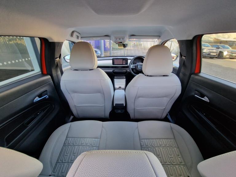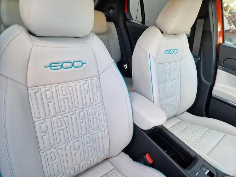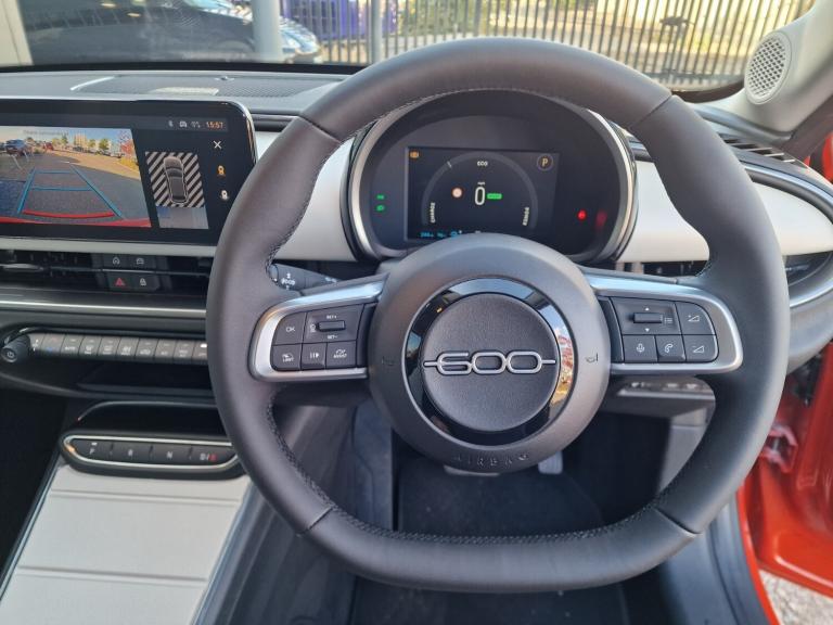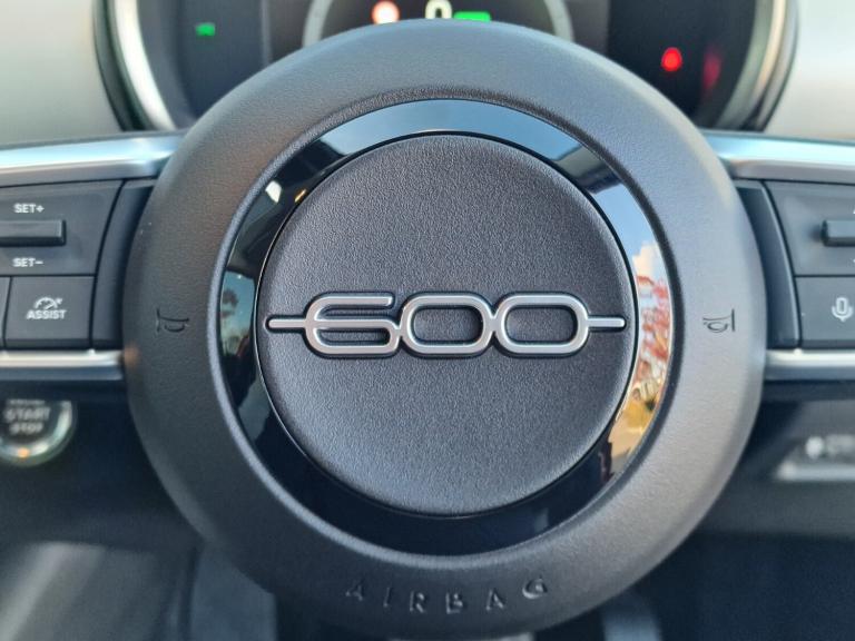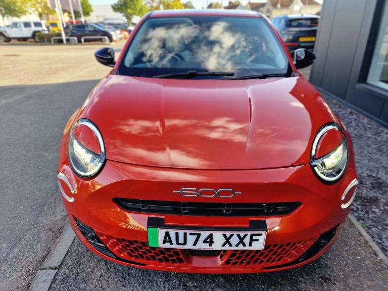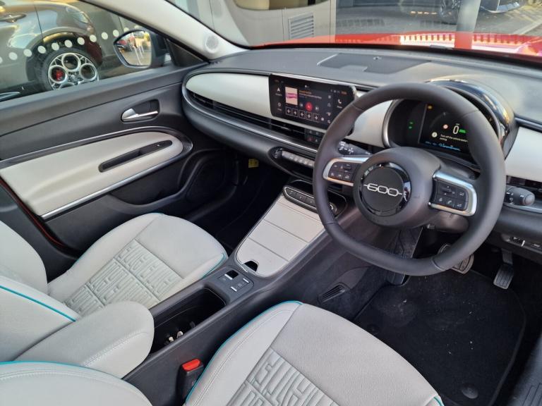 Fiat 600 115kW La Prima 54kWh 5dr Auto.!!!DELIVERY MILES!!!.180 degree rear view camera, 7'' TFT digital cluster, Autonomous driving level 2: Adaptive cruise control with stop & go and lane centering, Blind spot detection, Bluetooth connectivity, Connected services, Driver attention assist, E-call, E-Mode selector - Eco, Normal and Sport, Front, rear and side parking sensors, Hands free power liftgate, Intelligent speed assist, Lane departure warning, Lane keeping assistant (LKA), Power assist steering, Rain and dusk sensors, Traffic sign recognition, Voice recognition, Wireless apple car play/android Auto, Wireless charging pad for smartphones, 11 kW Onboard charger, DC fast charging 100kW, Mode 3 charging cable 22kW, 1st Row USB type-A and USB type-C, 2nd Row USB type-C, 6 speaker audio system, Uconnect infotainment 10.25'' touchscreen with integrated navigation system and DAB, Auto dimming frameless rear view mirror, Automatic headlights, Automatic high/low beam, Body colour rear skid plate, Body coloured door handles, Chrome DLO, Chrome window surround, Electric adjustable/heated/folding door mirrors, Front and rear Chromed 600 logo, Front and rear power windows, Full body cover, Gloss black finish B pillar, Gloss black finish C pillar, Gloss black fog lamp bezels, Gloss black shark fin antenna, Glossy black door mirrors, Heated windscreen wiper blade area, LED 3rd brake light, LED daytime running lights, LED Fog lamps with cornering function, LED front signature lighting, LED rear lights with chromed dots, LED rear signature lighting, LED reflector headlamps, Lower grille painted in body colour, Matt black side skirts with 600 chromed logo, Matt black wheel arches, Privacy glass, Puddle lights, Rear bumper embossed 600 logo with Italian flag, Rear side wing doors, Rear wiper, 2 Spoke synthetic leather steering wheel with audio control, 3 seat bench in 2nd row, 3rd Rear head restraint, 6 way manually adjustable front passenger seat, 6 way power adjustable driver seat with lumbar support and massage function, Adjustable trunk floor, Automatic climate control, Auxilliary 12V power socket, Chrome interior door handles, Dark metachrome dashboard ring, Dark Metachrome door panel C-shape, English handbook, Front centre armrest, Front headrests, Front passenger grab handle, Front seatback pockets, Heated front seats, ISOFIX attachment on front passenger and rear passenger seats, Matt Ivory painted dashboard fascia, Metachrome central compartment bezel, Rear