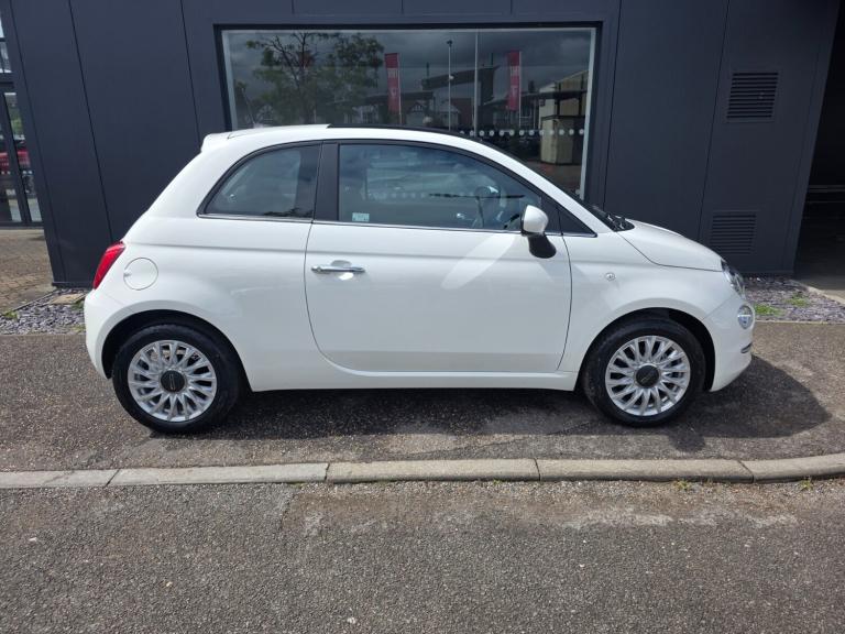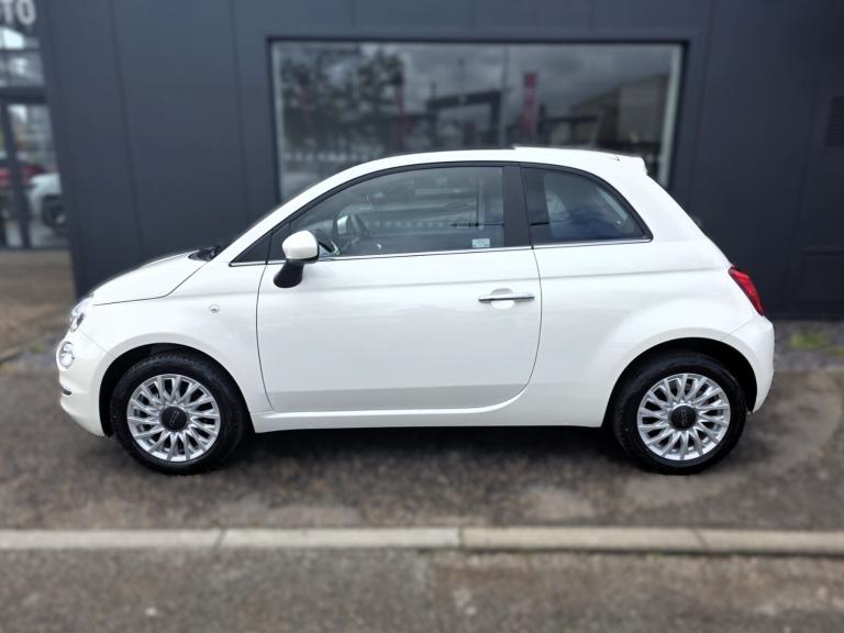 Fiat 500 1.0 Mild Hybrid 3dr.OTHER COLOURS AVAILABLE.Apple car play/Android Auto, Cruise control, E-call, External temperature gauge, Power assist steering, Speed limiter, Stop/start system, Trip computer, 4 speakers, 7'' HD Touchscreen Radio, Bluetooth, USB and DAB, Rear speakers, 3rd brake light, Body colour bumpers, Chrome plated exterior door handles, Electric front windows, Electrically adjustable and heated body coloured door mirrors, Fixed glass roof with sunblind, Front fog lights, Halogen headlamps, Heat insulated glass, Heated rear windows with wash wipe, LED daytime running lights, Rear side wing doors, Rear wiper, 1 passenger grab handle, 2 seat bench in second row, 50/50 split folding rear seats with height adjustable rear headrests, Air conditioning, Auxilliary 12V power socket, Chrome kit, Cloth upholstery, Front headrests, Height adjustable drivers seat, Height adjustable steering wheel, Isofix child seat preparation, Single front passenger seat, Techno leather steering wheel with audio controls, 7 airbags - Driver, passenger, side, window and drivers knee airbags, ABS/EBD, ESC + ASR/MSR + HBA + Hill holder, Manual passenger airbag deactivation function, Traction control, Tyre pressure monitoring system, Automatic door locking, Immobiliser, Locking fuel filler cap, Remote central locking, Body paint dashboard, 15'' Alloy wheels