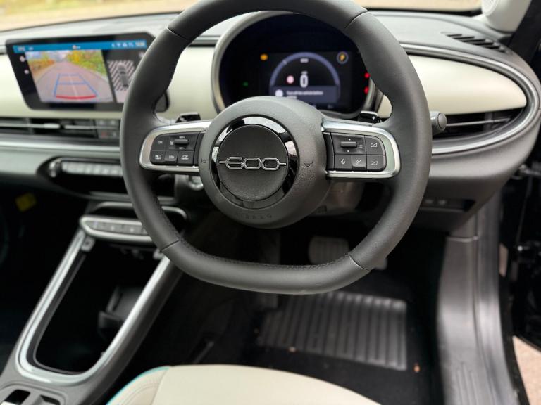 Fiat 600 1.2 Hybrid 48V 136 La Prima 5dr eDCT-6. Discover the brand new 2025 Fiat 600 La Prima, a stylish and efficient choice for your next vehicle. This particular model boasts a 1.2 litre petrol hybrid engine, meeting Euro 6 emission standards for cleaner driving. Experience effortless entry and starting with Passive Entry and Keyless Go, while Blind Spot Detection, including Blind Spot Assistance, enhances your awareness on the road. Stay comfortable in all conditions with Automatic Climate Control and enjoy the convenience of Rain and Dusk Sensors that automatically activate the headlights. The Fiat 600 La Prima offers a dynamic driving experience, accelerating from 0 to 62 miles per hour in just 8.5 seconds. This impressive performance, combined with its advanced features like keyless entry and automatic climate control, sets it apart from other vehicles in its class. The inclusion of Blind Spot Detection and automatic headlights further demonstrates its commitment to safety and convenience, making every journey smoother and more secure..Saving 5,212 Off List Price.360 degree parking sensors with 180 degree rear view camera, 7'' TFT digital cluster, Autonomous driving level 2: Adaptive cruise control with stop & go and lane centering, Blind spot detection, Bluetooth connectivity, BSRF connectivity box, Connected services, Drowsy driver detection, Emergency E-call assist, Engine emission level default, GSR II step 1, Hands free power liftgate, Intelligent speed assist, Lane keeping assistant (LKA), Odometer, Power assist steering, Rain and dusk sensors, Semi-automatic parking with Visiopark 1 system, Traffic sign recognition, Wireless apple car play/android Auto, Wireless charging pad for smartphones, Without drive mode selector, L2-AGM 12V battery, 1st Row USB type-A and USB type-C, 2nd Row USB type-C, 6 speaker audio system, Radio, Uconnect infotainment 10.25'' touchscreen with integrated navigation system and DAB, All power windows express Up/Down, Auto dimming frameless rear view mirror, Automatic headlights, Automatic high/low beam, Body coloured door handles, Chrome day light openings, Chromed exhaust tip, Electric adjustable/heated/folding door mirrors, Exterior chrome accents, Front and rear Chromed 600 logo, Gloss black finish B pillar, Gloss black shark fin antenna, Glossy black door mirrors, Heated windscreen wiper blade area, LED 3rd brake light, LED daytime running lights, LED Fog lamps with cornering function, LED front signature