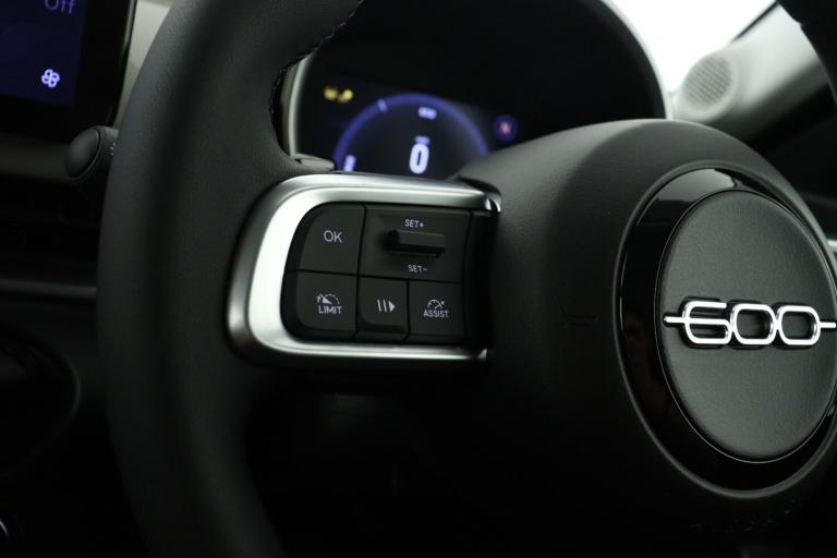 ..7'' TFT digital cluster, Bluetooth connectivity, BSRF connectivity box, Connected services, Cruise control, Driver attention assist, Emergency E-call assist, Intelligent speed assist, Lane keeping assistant (LKA), Odometer, Power assist steering, Rain and dusk sensors, Rear parking sensors, Traffic sign recognition, Wireless apple car play/android Auto, Without drive mode selector, L2-AGM 12V battery, 1st Row USB type-A and USB type-C, 4 speaker audio system, Uconnect infotainment 10.25'' touchscreen with DAB, All power windows express Up/Down, Auto dimming frameless rear view mirror, Automatic headlights, Body coloured door handles, Chrome DLO and 600 signature, Electric adjustable door mirrors, Exhaust tip on right side, Exterior chrome accents, Front and rear Chromed 600 logo, Gloss black finish B pillar, Gloss black shark fin antenna, Glossy black door mirrors, Heated windscreen wiper blade area, LED 3rd brake light, LED daytime running lights, LED Fog lamps with cornering function, LED front signature lighting, LED front turn indicators and position lights, LED rear lights, LED rear signature lighting, LED reflector headlamps, Matt black side skirts with 600 chromed logo, Rear bumper embossed 600 logo, Rear roof spoiler, Rear side wing doors, Rear wiper, 2 Spoke synthetic leather steering wheel with audio control, 3 rear headrests, 3 seat bench in 2nd row, 4 way manually adjustable passenger seat, 6 way manually adjustable drivers seat, Auxilliary 12V power socket, Body colour dashboard fascia, Chrome interior door handles, Dark metachrome dashboard ring, English handbook, Front centre armrest, Front headrests, Front passenger grab handle, Front seatback pockets, Heated front seats, ISOFIX attachment on front passenger and rear passenger seats, Manual climate control, Metachrome central compartment bezel, Monogram fabric upholstery, Paddle shifts, Partial body cover for shipment, Predisposal for accessory upgrade to default tunnel pad cover (dedicated prnd bezel), Rear seat 40/60 split, Single front passenger seat, Smart 15L storage central tunnel with tunnel pad cover, Sunvisor label ciao Fiat, Sunvisors with vanity mirrors, 3x3 point rear seatbelts, 6 airbags, ABS, Autonomous Emergency Brake (AEB) & Vulnerable Road User (VRU) Protection, Child locks on rear doors, Electronic parking brake with auto hold, ESC (Electronic Stability Control), Front passenger airbag deactivation, Seatbelt reminder and pretensioners for all seats, Anti-theft