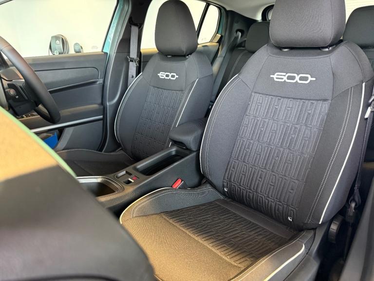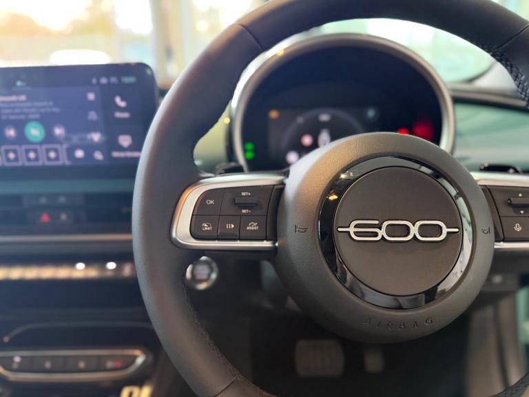 Fiat 600 1.2 Hybrid 48V 5dr eDCT-6..7'' TFT digital cluster, Bluetooth connectivity, BSRF connectivity box, Connected services, Cruise control, Drowsy driver detection, Emergency E-call assist, Engine emission level default, GSR II step 1, Intelligent speed assist, Lane keeping assistant (LKA), Odometer, Power assist steering, Rain and dusk sensors, Rear parking sensors, Traffic sign recognition, Wireless apple car play/android Auto, Without drive mode selector, L2-AGM 12V battery, 1st Row USB type-A and USB type-C, 4 speaker audio system, Radio, Uconnect infotainment 10.25'' touchscreen with DAB, All power windows express Up/Down, Auto dimming frameless rear view mirror, Automatic headlights, Body coloured door handles, Chrome day light openings, Electric adjustable door mirrors, Exterior chrome accents, Front and rear Chromed 600 logo, Gloss black finish B pillar, Gloss black shark fin antenna, Glossy black door mirrors, Heated windscreen wiper blade area, LED 3rd brake light, LED daytime running lights, LED Fog lamps with cornering function, LED front signature lighting, LED front turn indicators and position lights, LED rear lights, LED rear signature lighting, LED reflector headlamps, Matt black side skirts with 600 chromed logo, Rear bumper embossed 600 logo, Rear roof spoiler, Rear side wing doors, Rear wiper, 2 Spoke synthetic leather steering wheel with audio control, 3 rear headrests, 3 seat bench in 2nd row, 4 way manually adjustable passenger seat, 6 way manually adjustable drivers seat, Auxilliary 12V power socket, Body colour dashboard fascia, Chrome interior door handles, Dark metachrome dashboard ring, English handbook, Front centre armrest, Front headrests, Front passenger grab handle, Front seatback pockets, ISOFIX attachment on front passenger and rear passenger seats, Manual climate control, Metachrome central compartment bezel, Monogram fabric upholstery, Paddle shifts, Partial body cover for shipment, Predisposal for accessory upgrade to default tunnel pad cover (dedicated prnd bezel), Rear seat 40/60 split, Single front passenger seat, Smart 15L storage central tunnel with tunnel pad cover, Sunvisor label ciao Fiat, Sunvisors with vanity mirrors, 3x3 point rear seatbelts, 6 airbags, ABS, Autonomous Emergency Brake (AEB) & Vulnerable Road User (VRU) Protection, Child locks on rear doors, Electronic parking brake with auto hold, ESC (Electronic Stability Control), Front passenger airbag deactivation, Seatbelt reminder and