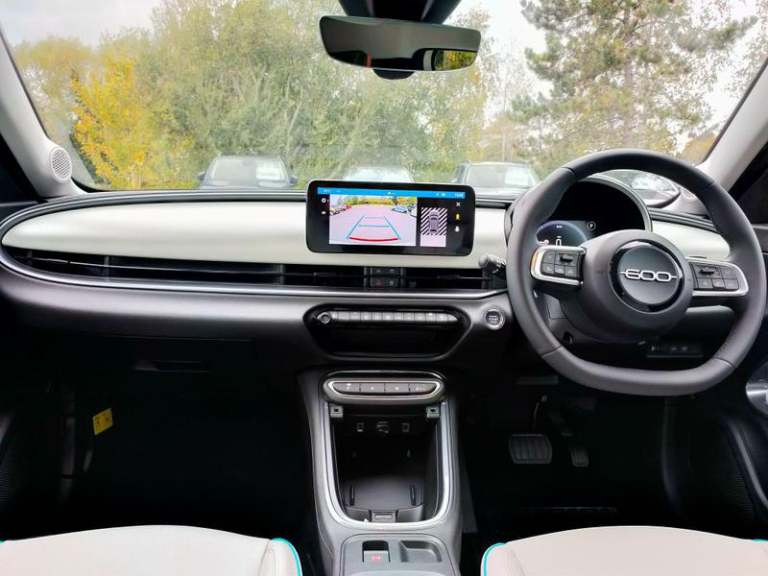 12V Socket, 1st Row USB Type A and USB Type C plus 2nd Row USB Type-C, 6 Speakers Audio System, Connected Services, Emergency E-Call Assist, Glossy Black Shark Fin Antenna, Uconnect 10.25in Infotainment Touchscreen with Integrated Navigation System and DAB, Wireless Carplay and Android Auto, Wireless Charging Pad, Adaptive Cruise Control with Level 2 Autonomous Driving, Blind Spot Detection, Drowsy Driver Detection, Front - Side - Rear Parking Sensors with 180-degree Rearview Camera, Kit English, Odometer - Miles, Traffic Sign Information, 18in Alloy Wheels - Diamond Cut, Anti Theft Bolts, Body Coloured Door Handles, Chrome Accents - Upper Dlo and Chrome Line - Logo On Doors Molding, Chrome Exhaust Tip, Chromed Day Lighting Openings - DLO, Electric Windows - Front and Rear with Express Up-Down, Electrically Foldable and Adjustable Heated Door Mirrors, Front and Rear Chromed 600 Logo, Glossy Black B-Pillar, Glossy Black Door Mirror Covers, Heated Windscreen Wiper Blade Area, Kit Fix and Go, LED Front Turn Indicator and Position Lights, Partial Body Cover For Shipment, Privacy Glass, Puddle Lights, Side Skirts - Matt Black with 600 Chromed Logo, Automatic High-Low Beam, LED Daytime Running Lights, LED Fog Lights with Cornering Function, LED Rear Signature Lights, LED Reflector Headlights, Synthetic Leather - Fiat Ivory Monogram with Turquoise Details, 3rd Rear Headrest and Seatback Pocket, 6-Way Manual Adjustable Passenger Seat, 6-Way Power Adjustable Driver Seat with Lumbar Adjustment