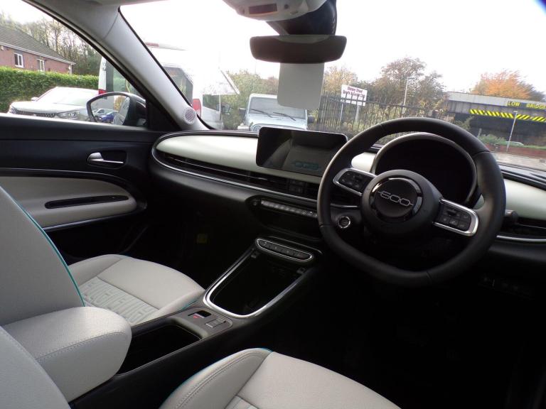 This 2025 Fiat 600e La Prima presents an exceptional opportunity, boasting incredibly low mileage of just 10 miles, making it virtually as new. As a single owner vehicle, this electric model offers a substantial battery capacity of 54 kWh, providing a maximum range of 252 miles on a full charge. Recharging at home with a 7kW charger takes approximately 8 hours and 15 minutes, while rapid public charging can replenish the battery from empty to 80% in as little as 36 minutes.The Fiat 600e La Prima stands out with its impressive electric performance and convenience. Its extensive range and swift charging capabilities mean you can travel further and spend less time waiting. The combination of its advanced electric powertrain and the premium La Prima trim ensures a refined and efficient driving experience, setting it apart from other vehicles in its class.