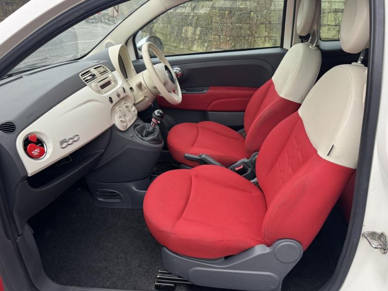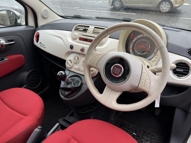 This 2012 Fiat 500 Lounge is presented with a clear vehicle history check, offering peace of mind for its next owner. This stylish hatchback features a 1.2L petrol engine and comes in the desirable Lounge trim. Notable features include eye catching chrome finish door mirrors and a sporty red side stripe. Inside, you'll find the convenience of the Blue&Me hands free system with USB port and Bluetooth connectivity, along with air conditioning to ensure a comfortable journey. The car is also predisposed for TomTom navigation, adding to its practicality., , The Fiat 500 Lounge is an excellent choice for those seeking an economical and affordable car to run. It boasts an impressive fuel economy of 59 miles per gallon, which is better than many other cars in its class. Furthermore, its low insurance group rating and low CO2 emissions indicate lower running costs, making it an attractive option for budget conscious drivers. CAR LOOKS AND DRIVES GREAT. COMES WITH FULL SERVICE HISTORY AND WILL BE SERVICED BY OURSELVES ON SALE. WILL ALSO BENEFIT FROM A NEW 12 MONTHS MOT AND 3 MONTHS WARRANTY. ANY INSPECTION OR PART EXCHANGE WELCOME. PLEASE PHONE FOR MORE INFORMATION OR TO ARRANGE A VIEWING., 3 months warranty, Next MOT due 12022026, Last serviced on 22012025, Full service history, Clean bodywork, Red Cloth interior - Clean Condition, Tyre condition Good, 4 seats, White, 4 owners, Upgrades - Side stripe- Red, Door Mirrors - Chrome Finish, Blue&Me - Predisposition for TomTom, Pop Interior Trim, Standard Features - 15in Alloy Wheels, ABS - Anti-Lock Braking System, Air Conditioning, Airbags - Driver, Airbags - Front Side, Airbags - Passenger, Black ambience, Blue&Me - Hands Free System with USB Port, Body colour door mirrors, Chrome Kit, Drivers Knee Airbag, EBD - Electronic Brakeforce Distribution, Electric Front Windows, Electrically Adjustable Heated Door Mirrors, Fixed Glass Roof with Sunblind, Fixed Glass Sunroof with sunblind, ISOFIX Child Seat Attachments, Ivory ambience, Lounge Interior Trim, Power Steering - Dualdrive Electric, Radio-CD and MP3 Player, Remote Central Locking, Space Saver Spare Wheel, Steering Wheel - Height Adjustment, Steering Wheel - Leather with Audio Controls, Window Airbags, £2,995