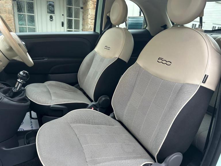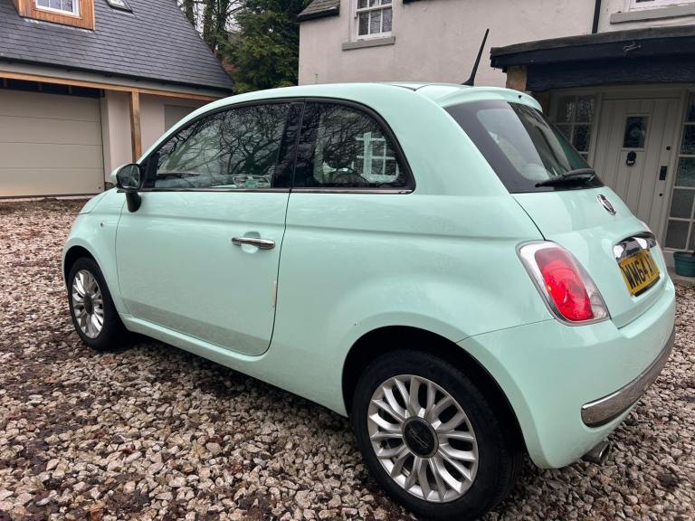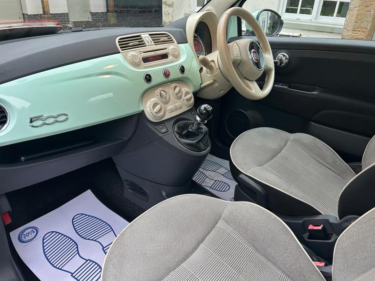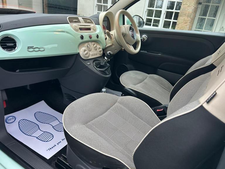Here we have a lovely Fiat 500 Lounge (2015) 1.2 Lounge Hatchback 3dr Petrol Manual Euro 6 (s/s) (69 bhp) in Mint Green with contrasting beige cheque interior. 76K Miles by 2 owners from new with a new Full M.O.T with no advisories. Great lounge spec that includes Integrated Bluetooth. CD Stereo with USB Connectivity. Power steering. Electric Windows. Alloys with good tyres all round. Remote central locking. Glass roof. Low tax and insurance. Ideal first car. HPi clear.