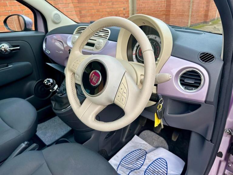 2013 Fiat 500 1.2 Lounge in very much sought after pink paint work with clothleather interior, nice mileage. Will come complete with a 12 month MOT until March 2027. 1.2 petrol engine, ULEZ compliant and very economical to run. Tax just 35 pounds. 10 services Fresh service previous receipts for Cambelt and clutch Spec includes: Electric windows & mirrors Remote central locking City steering mode Folding split rear seats CD stereo, ABS, ISOFIX Body-coloured bumpers & mirrors Official Fiat alloys Rear heated window Panoramic roof Aircon Supplied with: 2 original keys, spare wheel, tool kit, and parcel shelf A well-prepared and great spec model ready to drive away. **We specialise in Fiat 500s, with one of the UK's largest selections over 40 in stock. From entry models to rare editions, we're passionate about helping you find the right one. We also supply and fit Apple CarPlay Android Auto units with Google Maps, Spotify, Waze & more. Buy with confidence from an RAC Approved Garage. Every vehicle is MOT'd, serviced if due, and supplied with a 30-day warranty (extendable to 12 months). All are fully inspected and professionally prepared. Viewings 7 days a week by appointment in our indoor showroom, just outside Tamworth off J11 M42. Nationwide delivery, finance & part exchange available contact us today.**