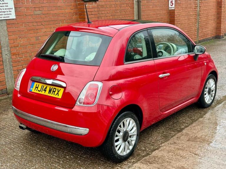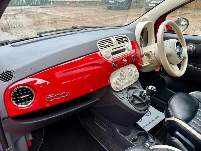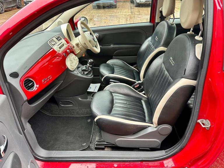 2014 Fiat 500 1.2 Lounge in Red with full black leather 80,700 Miles MOT December 2026 we have treated the rear axle, replaced both rear springs, and replaced nearside front tyre. Just arrived unusual leather interior. finished in red paint. Powered by the reliable 1.2 petrol engine, ULEZ compliant and very economical to run. Comes with a great MOT until December 2026 and has just had pre-sale work completed, including: Fresh service Includes service history and is just £35 a year to tax, making it an affordable and sensible small car. Spec includes: Electric windows & mirrors Remote central locking City steering mode Folding split rear seats CD stereo, ABS, ISOFIX Body-coloured bumpers & mirrors Official Fiat alloys Rear heated window Panoramic roof Aircon Supplied with: 2 original keys, spare wheel, tool kit, and parcel shelf A well-prepared and great spec model ready to drive away. **We specialise in Fiat 500s, with one of the UK's largest selections over 40 in stock. From entry models to rare editions, we're passionate about helping you find the right one. We also supply and fit Apple CarPlay Android Auto units with Google Maps, Spotify, Waze & more. Buy with confidence from an RAC Approved Garage. Every vehicle is MOT'd, serviced if due, and supplied with a 30-day warranty (extendable to 12 months). All are fully inspected and professionally prepared. Viewings 7 days a week by appointment in our indoor showroom, just outside Tamworth off J11 M42. Nationwide delivery, finance & part exchange available contact us today.**