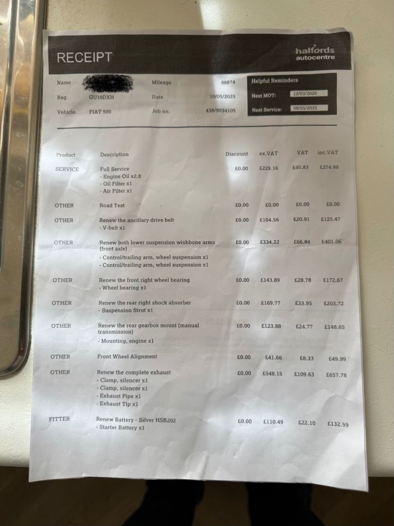 Check work receipts, as much and more has been spent on the car in the last year then I’m asking for it.