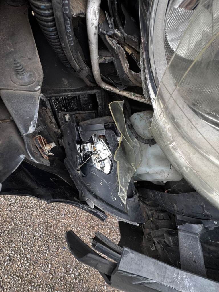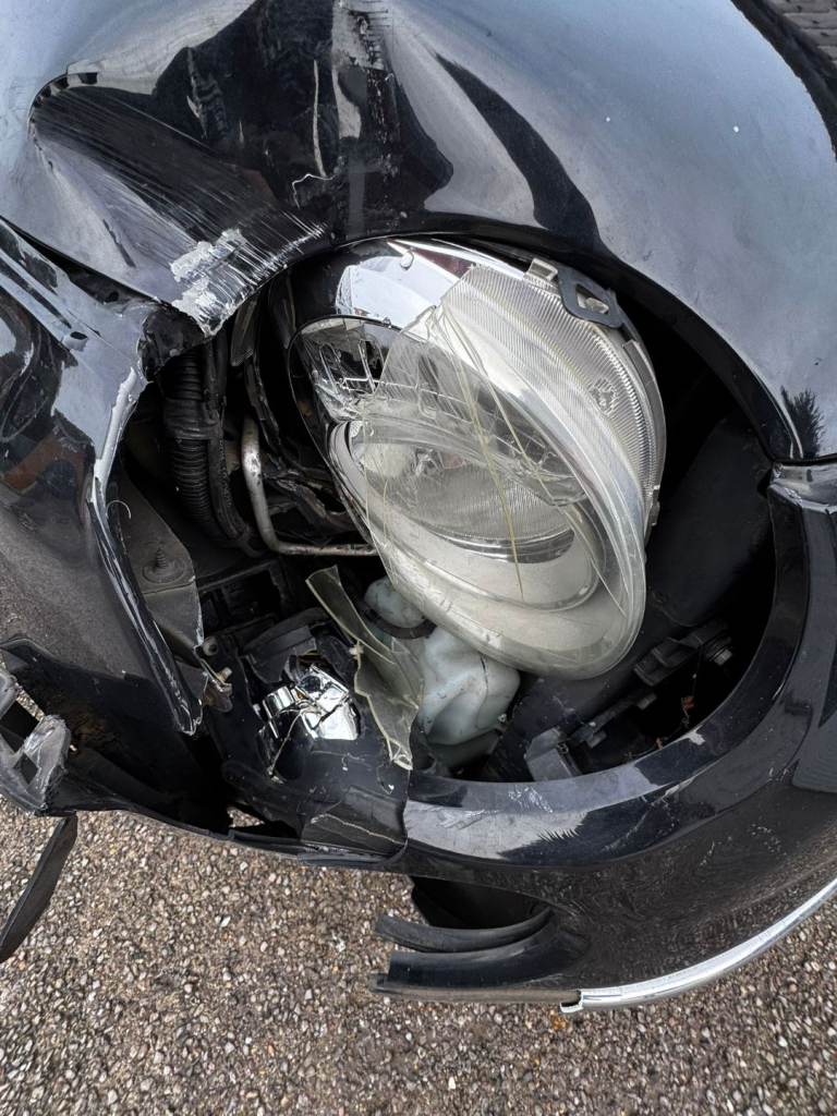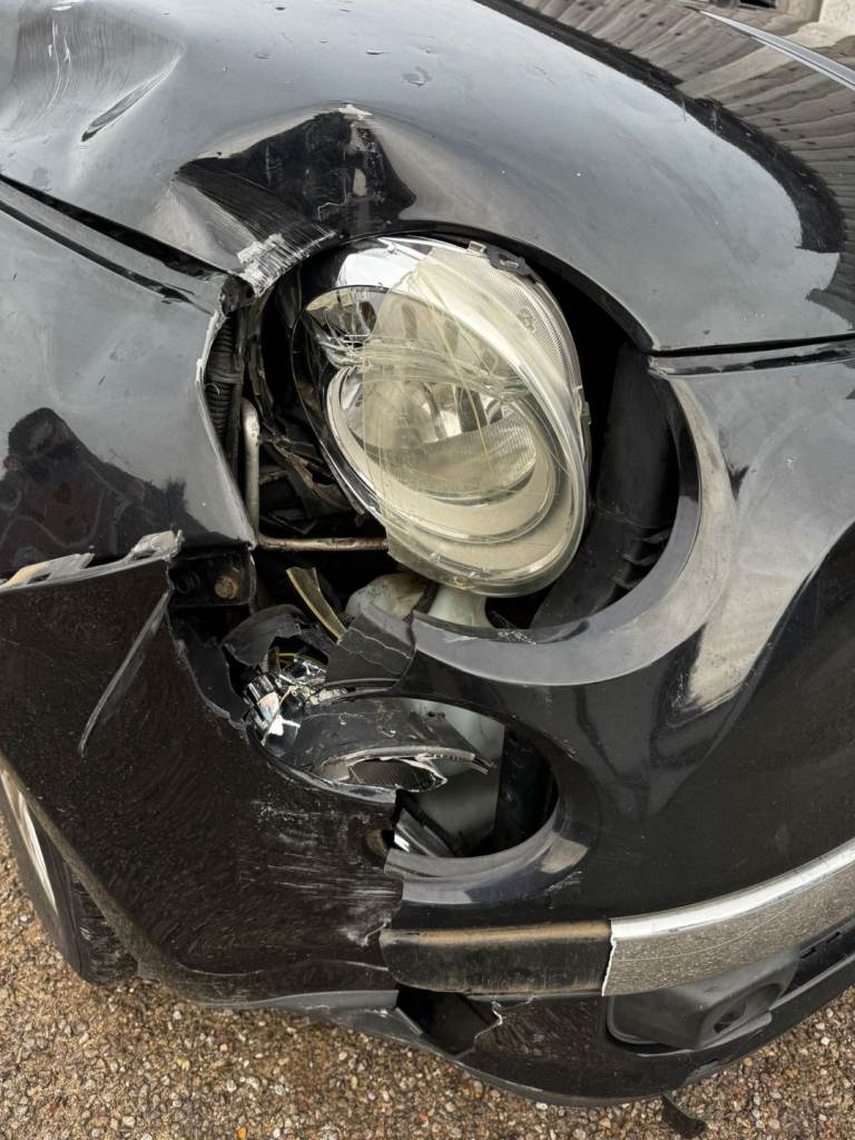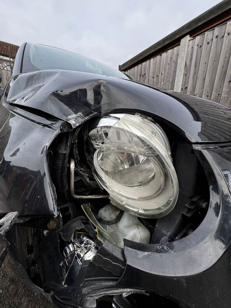 Vehicle has front passenger-side impact damage (wing, bumper, headlight and bonnet area – see photos).
