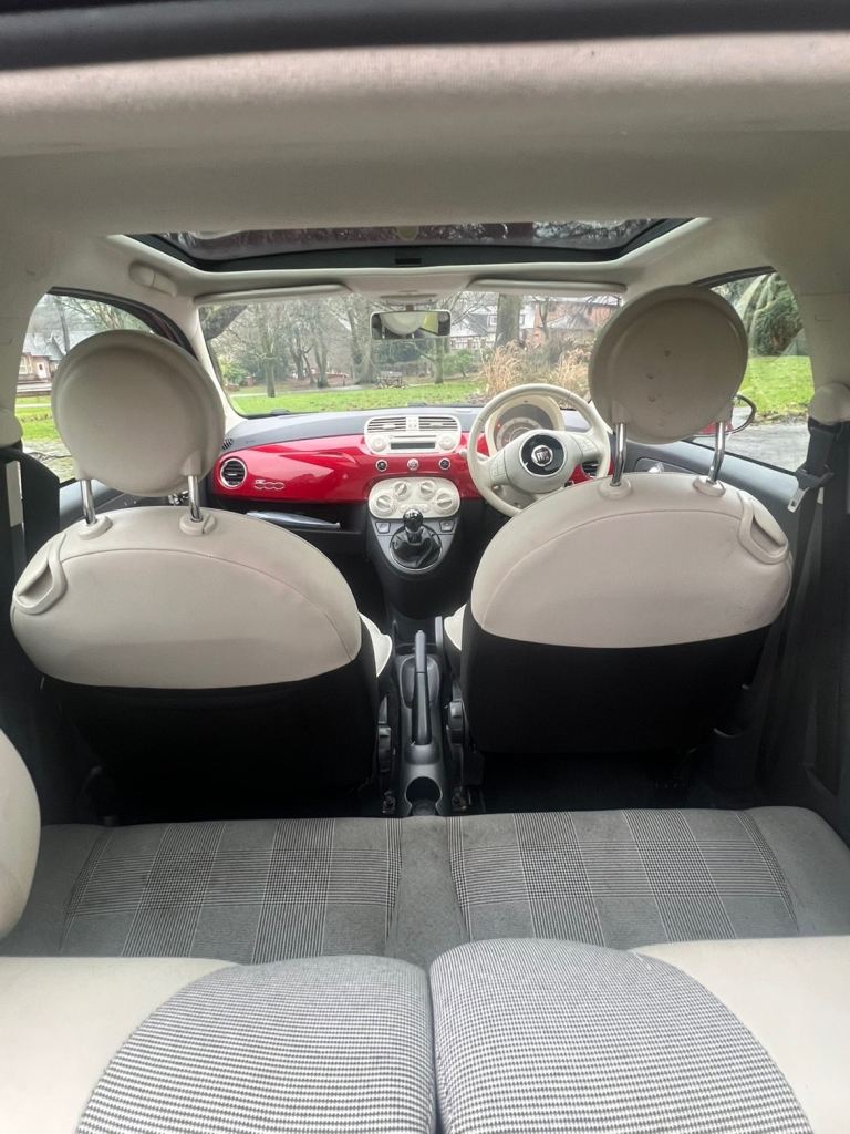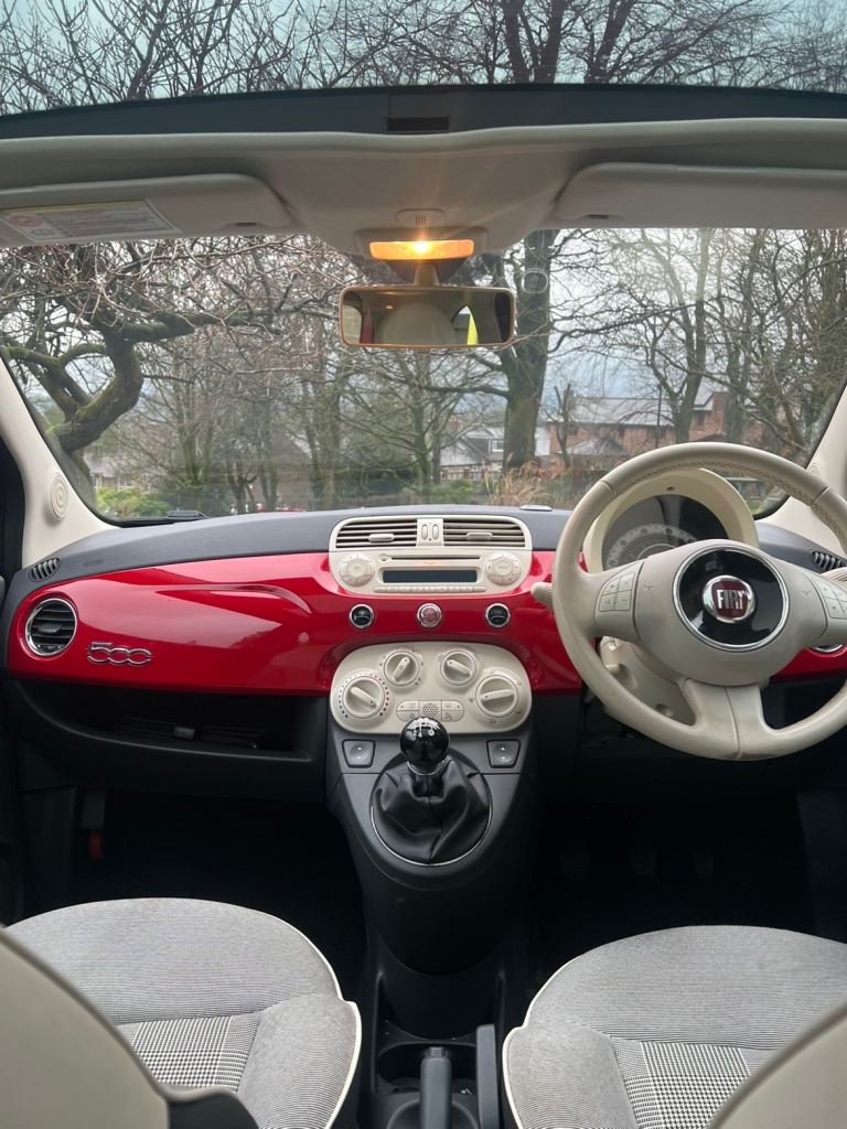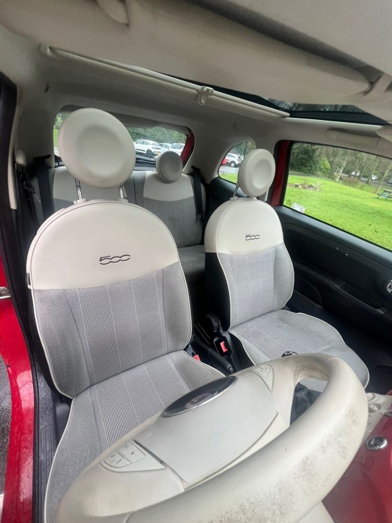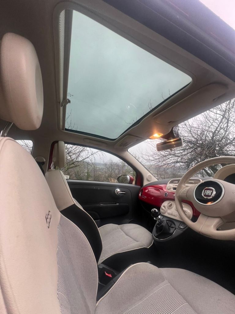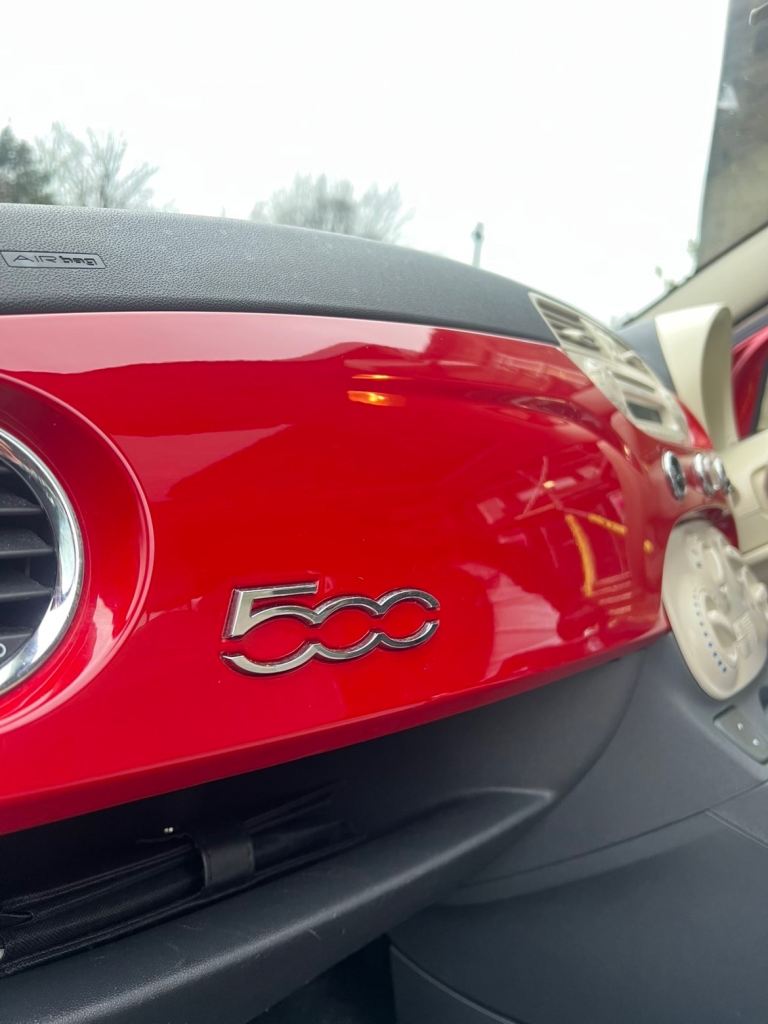 This is a beautiful fiat 500 that has been well looked after and the condition shows, perfect for first time drivers and cheap to insure. This is high spec car with a panoramic roof and sun visor, rare alloys and finished in cherry red.