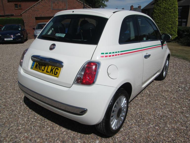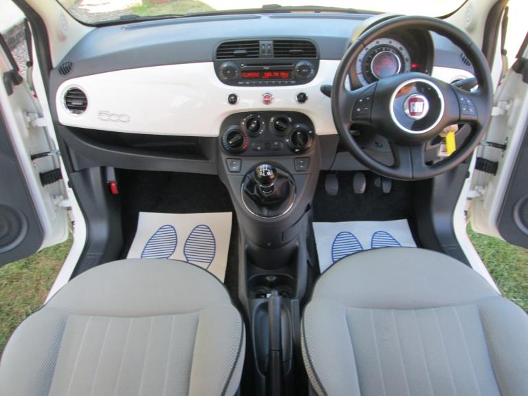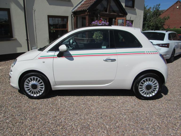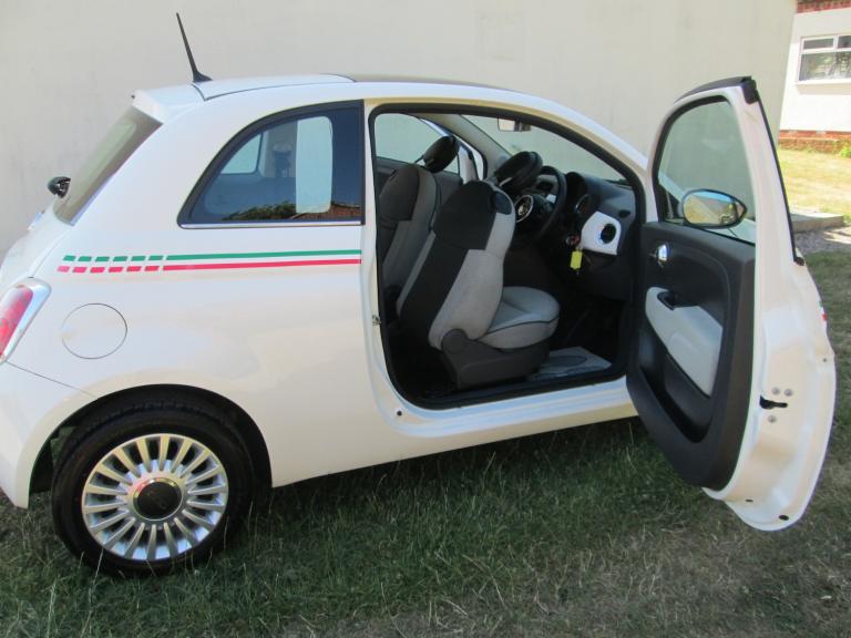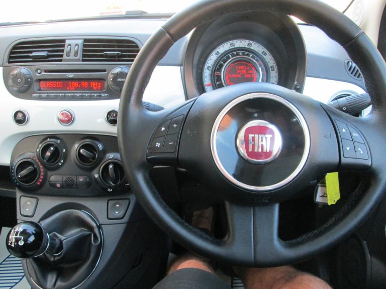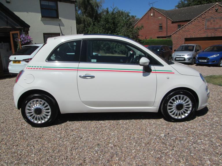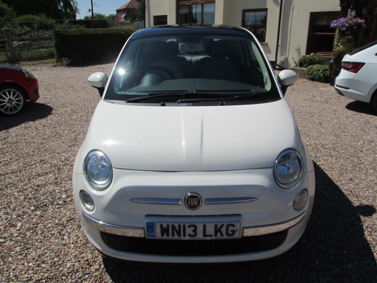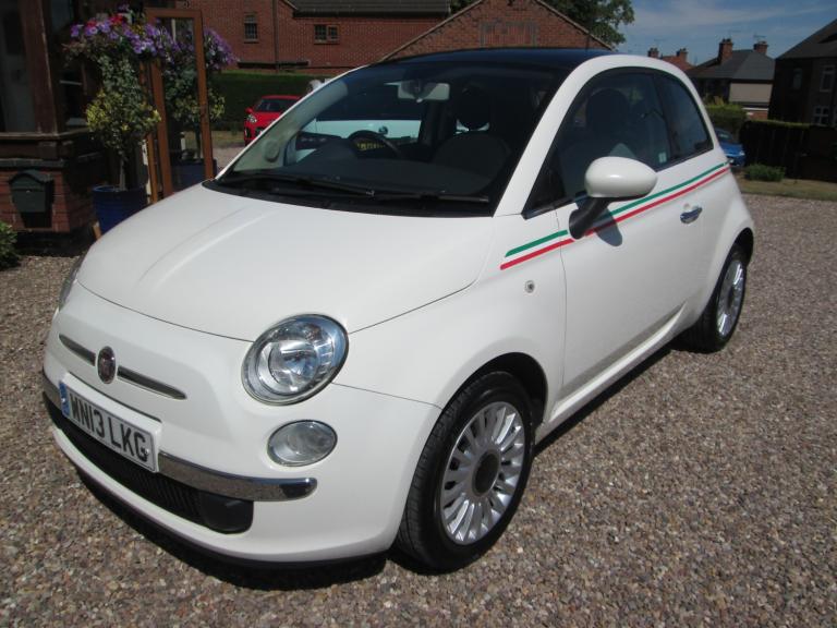 Fiat 500. Lounge. Manual. 1.2 Petrol. Registered in April 2013 on a 13 registration. The glossy paintwork is finished in bright white. Top specification car with a host of extras including Power assisted steering, Electric windows, Remote central locking, Blue tooth telephone. Cd stereo with AUX in, Multi function steering wheel, Panoramic glass roof, ABS, Multi airbag, Folding rear seats, Front and rear head restraints, Height adjustable driver seat and column, Immobilizer and alloy wheels. 4 former keepers from new and covered just 71000 miles. Good service history with 9 inspections. Timing belt replaced at 35k. MOT all the way through to November 2026 and £35 road tax. The interior is in exceptional order. Body and paintwork are excellent. Original book pack, Spare key, Service history and VOSA MOT history are all present. Great value small car ideal for the new driver. £3480. Please call for more details. Part exchange possible. We are located within 1 mile of the M1 junction 28 close to Derby, Nottingham and Mansfield. Other quality small cars always available. Viewing strictly by appointment only.