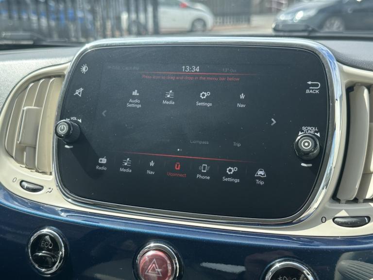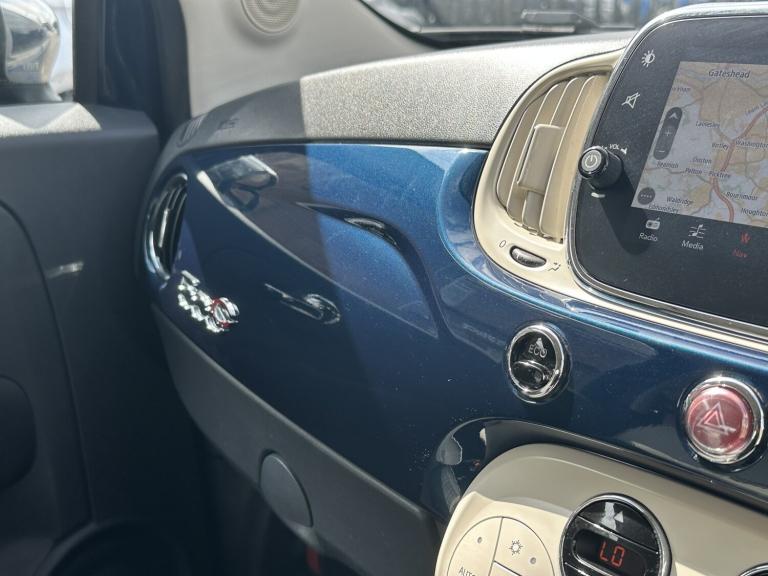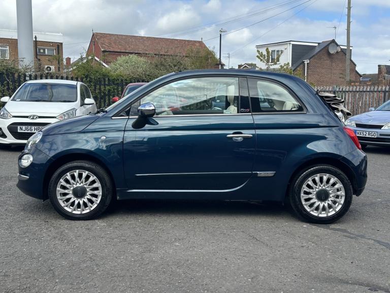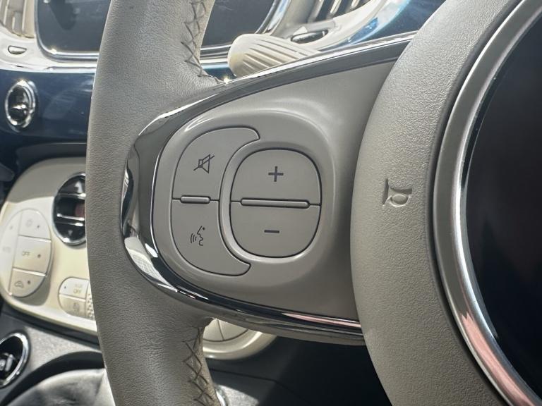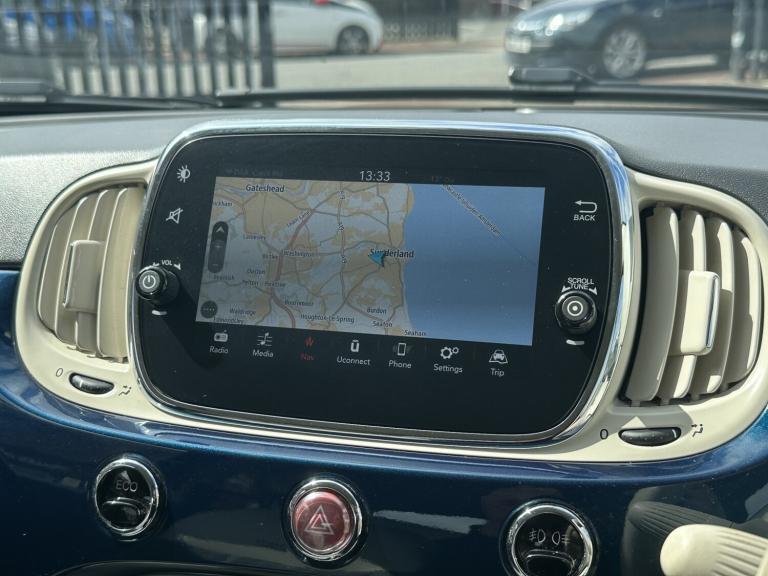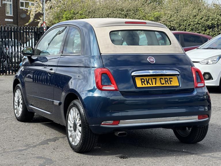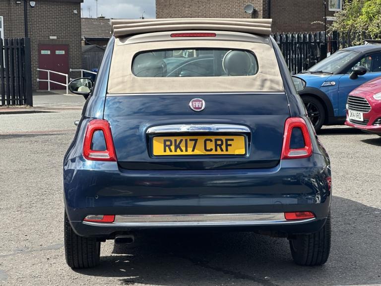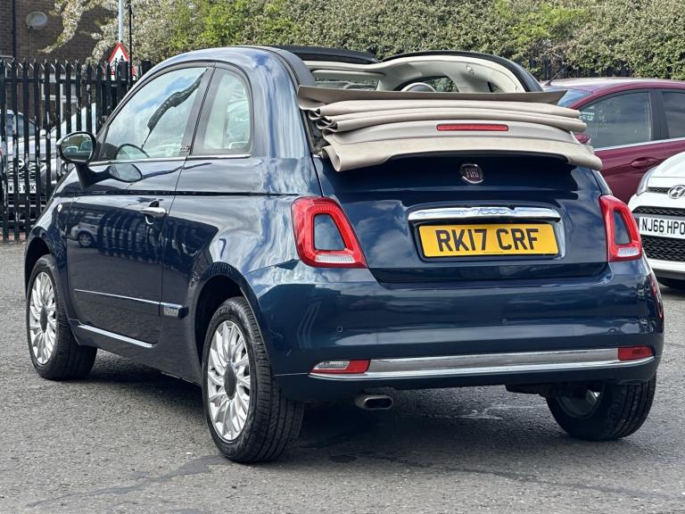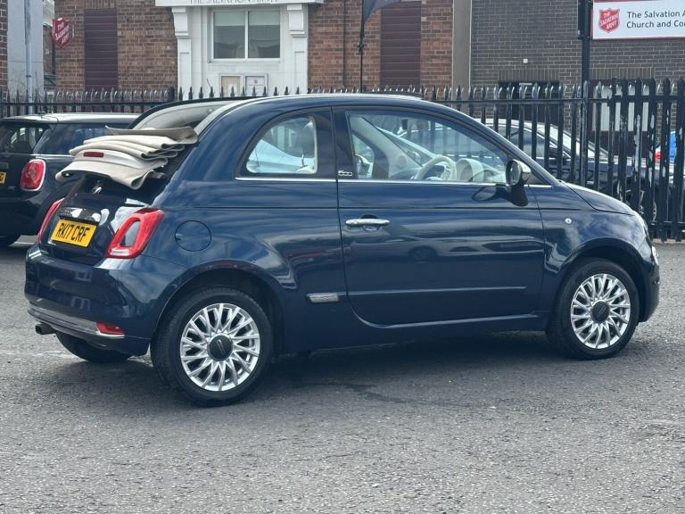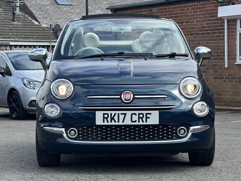 Discover this charming 2017 Fiat 500C Lounge with remarkably low mileage for its age, having covered just 37,631 miles. This stylish convertible features a frugal 0.9L petrol engine and meets Euro 6 emissions standards. Inside, you'll find a 7in HD touchscreen radio complete with 3D navigation, Bluetooth connectivity for calls and music, and USB/Aux in ports, alongside DAB digital radio. Comfort is assured with automatic climate control, and the interior is enhanced by a leather gear knob. The car is complemented by a fresh new full service and a new MOT prior to sale. This Fiat 500C Lounge offers excellent running costs, boasting an impressive fuel economy of up to 74 miles per gallon, which is significantly better than many other vehicles in its class. Its low CO2 emissions further contribute to its economical and environmentally conscious profile. The exterior is subtly enhanced with chrome finished door mirror covers and body coloured side rubbing strips featuring the iconic 500 logo, adding a touch of sophistication to this already appealing city car