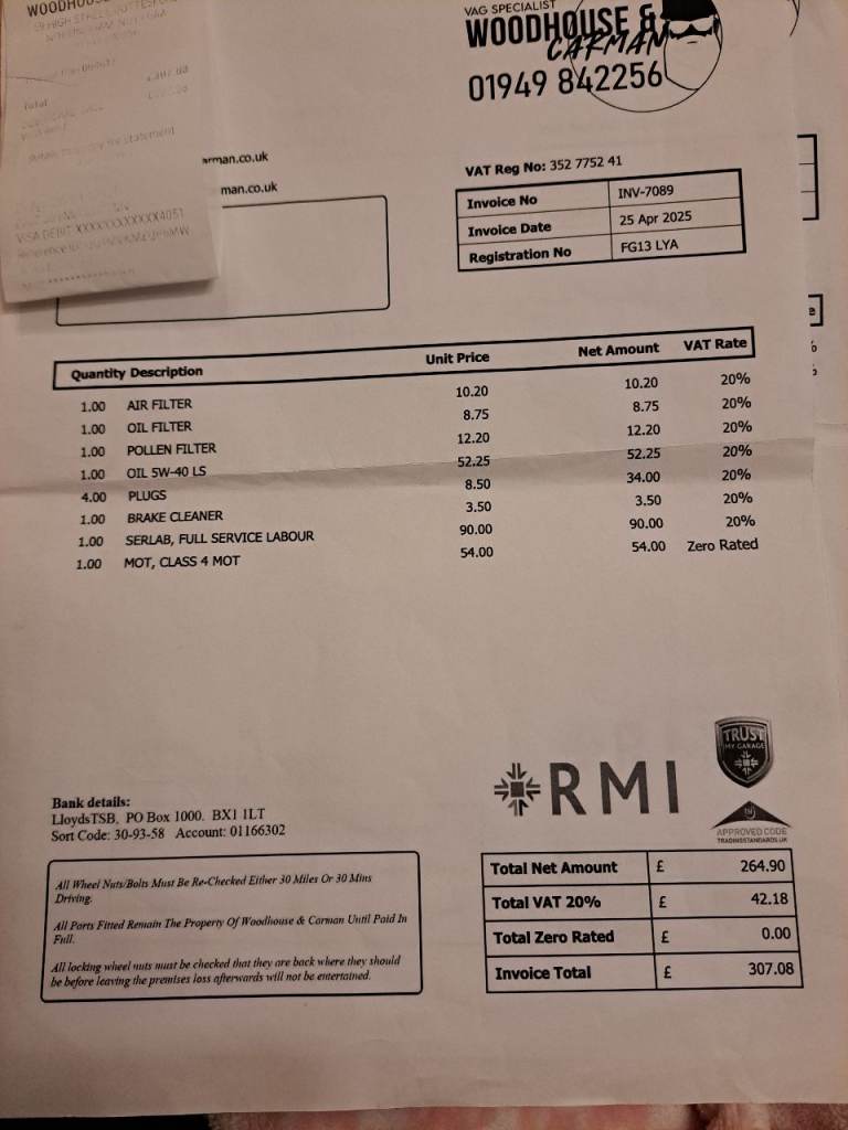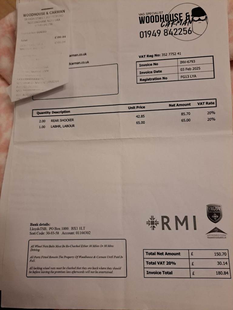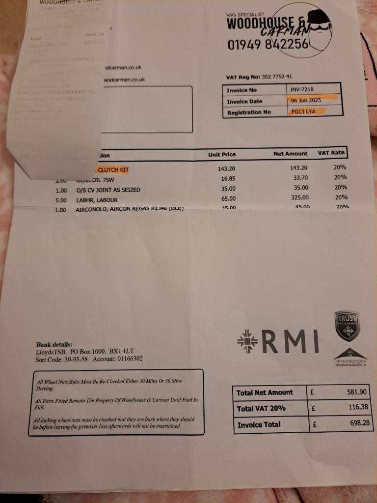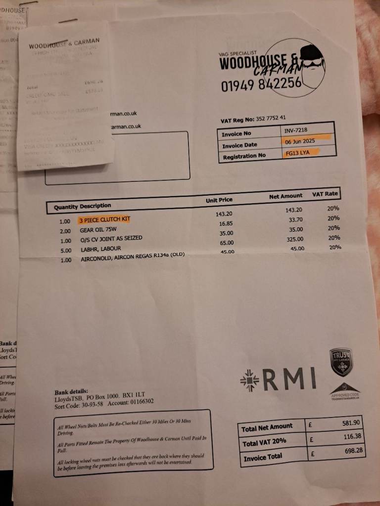 Receipts for recent clutch and fly wheel please see pics. Had over £1500 spent this year alone