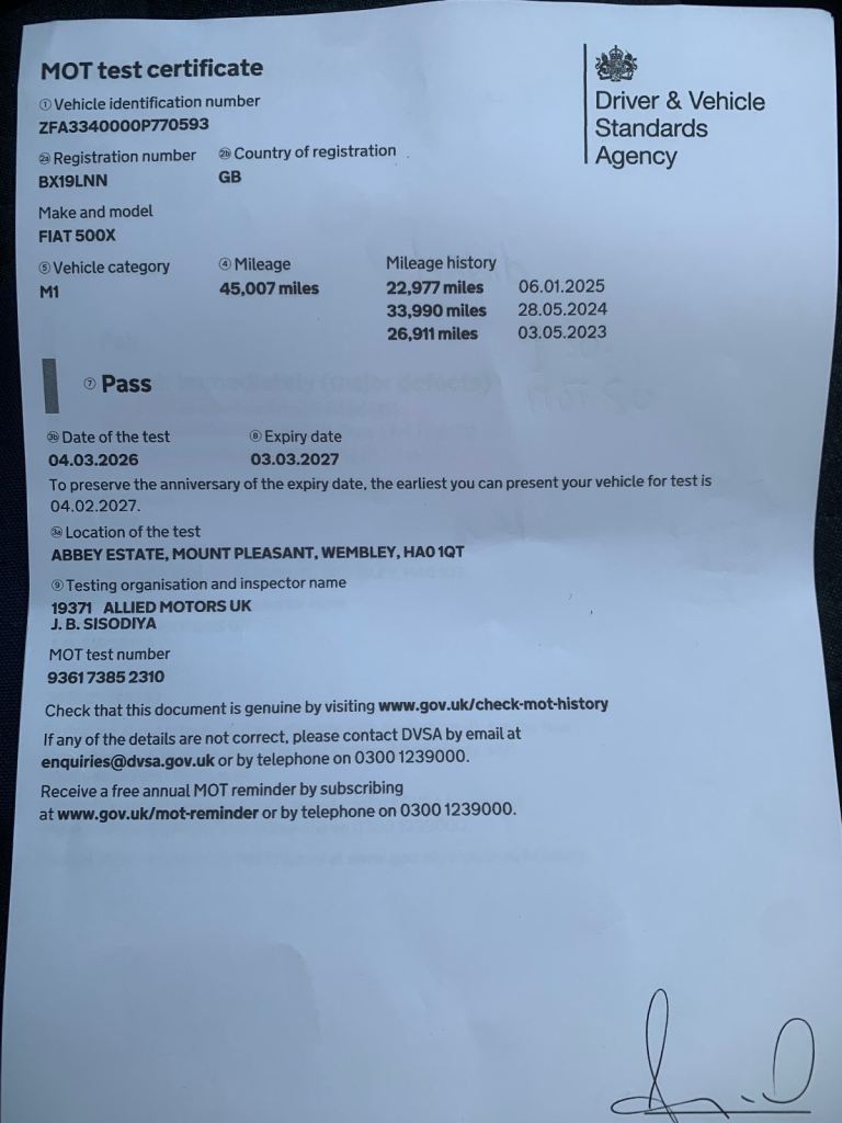 Posting for 12+ yearsFiat, 500X, Hatchback, 2019, Manual, 999 (cc), 5 doors