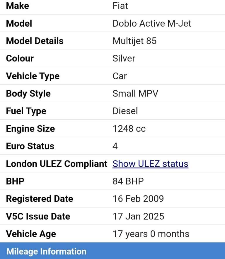Fiat, DOBLO, MPV, 2009, Manual, 1248 (cc), 5 doors 11 MONTHS MOT CERTIFICATE 💥