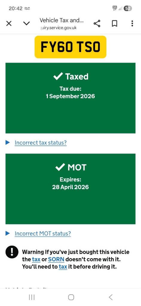 This vehicle has not been reported stolen, scrapped, exported or flagged as unroadworthy.