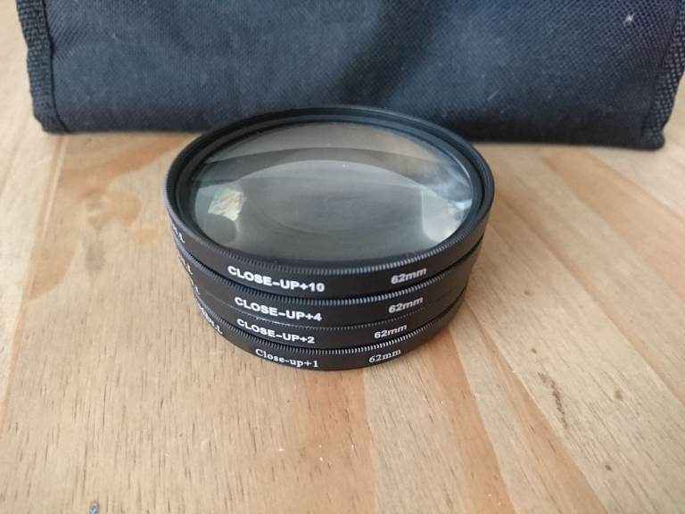 New 62mm Close Up Set of Lens Filters +1+2+4+10 Macro comes in nice storage pouch, will fit any 62mm lens.