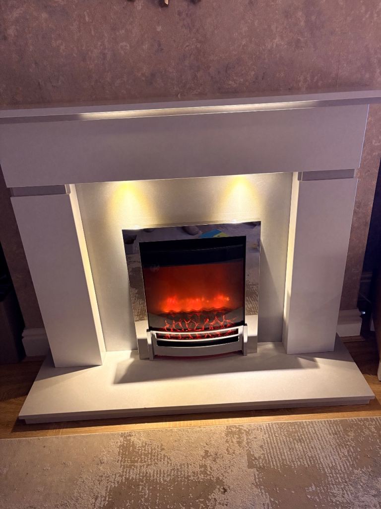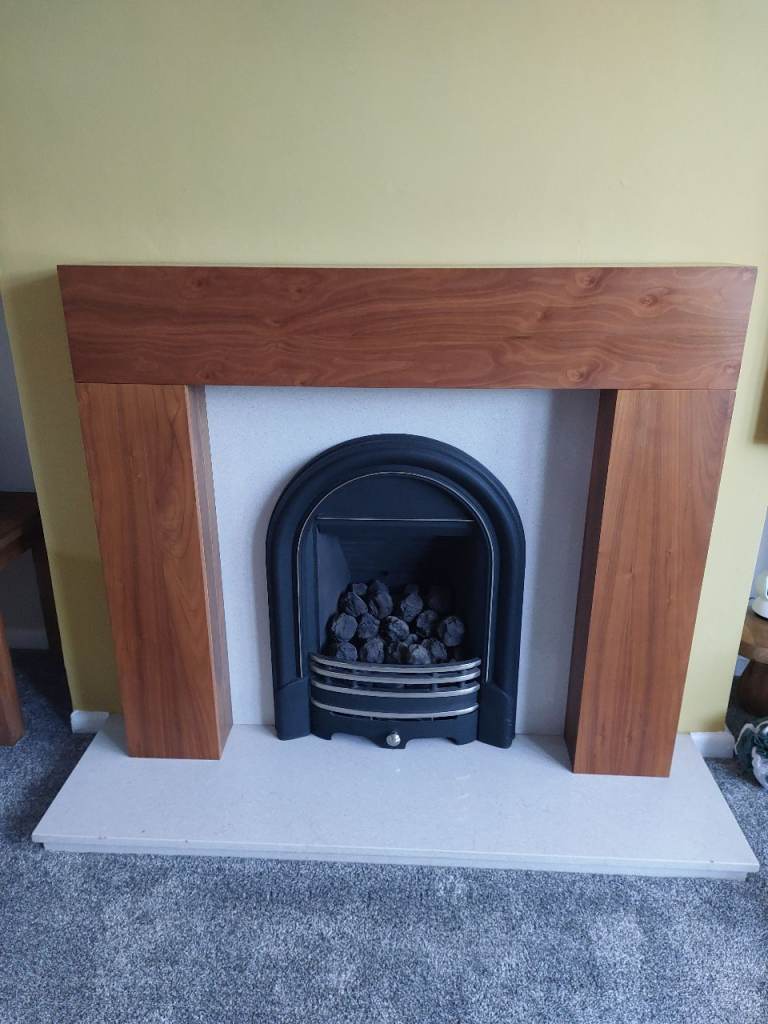 (Small) Modern Fire Surround. Dimensions are in add. In good condtion. Has a few minor marks.