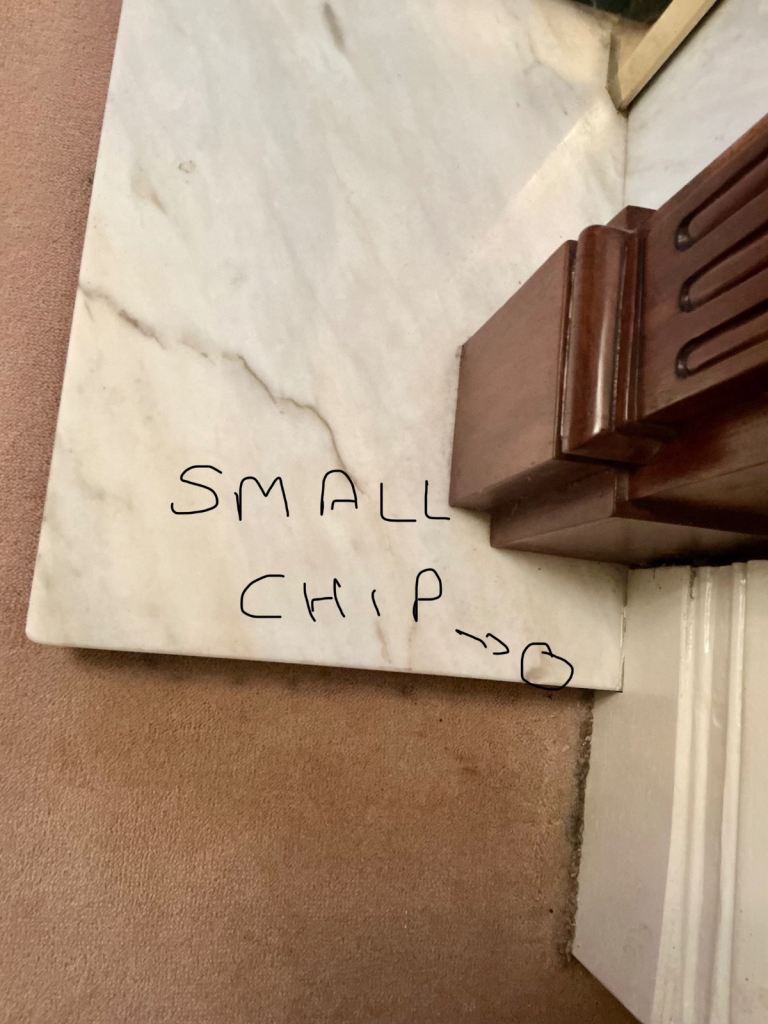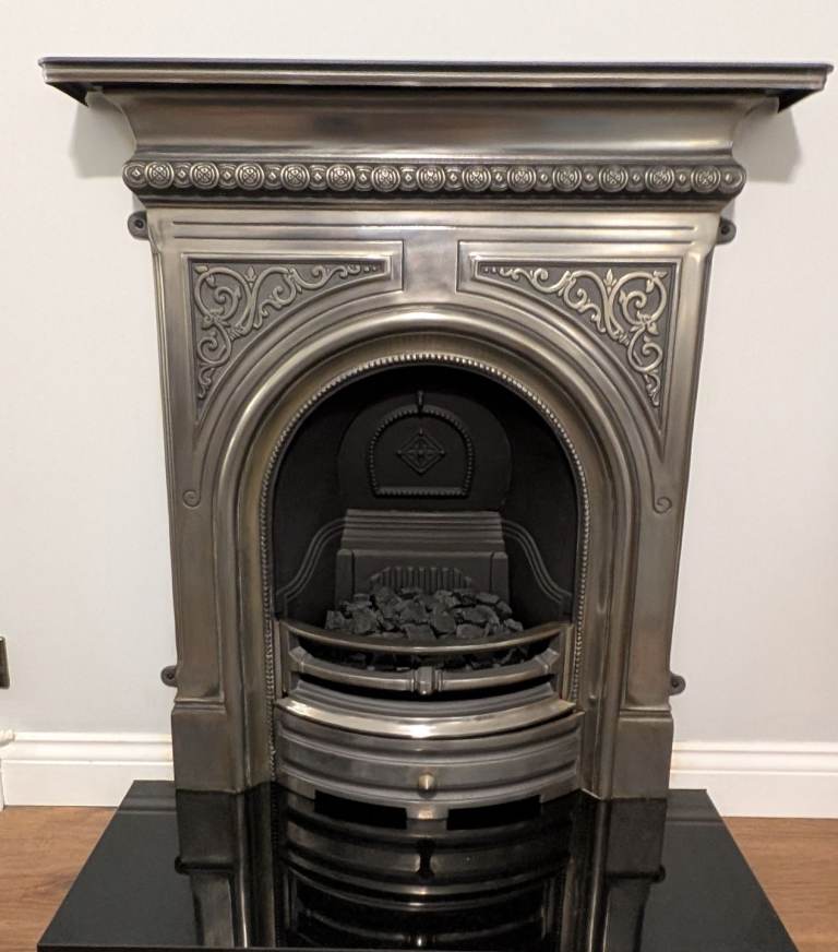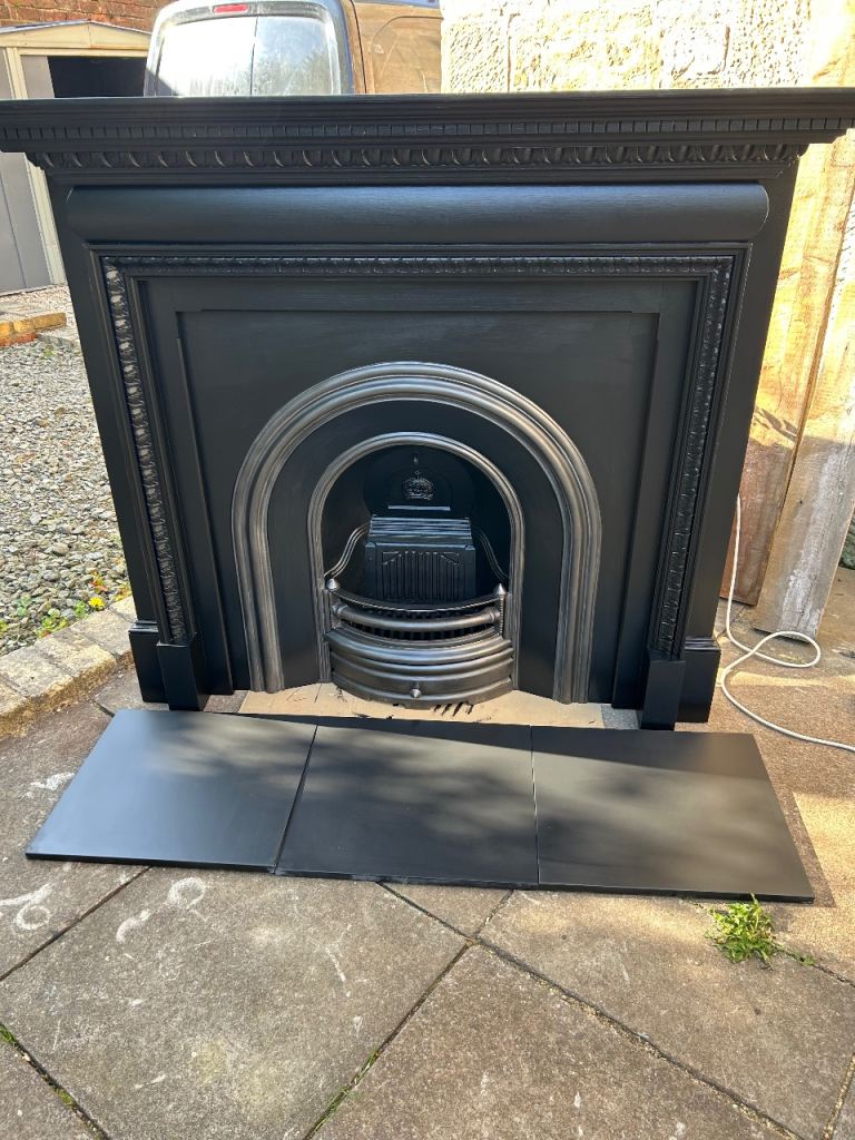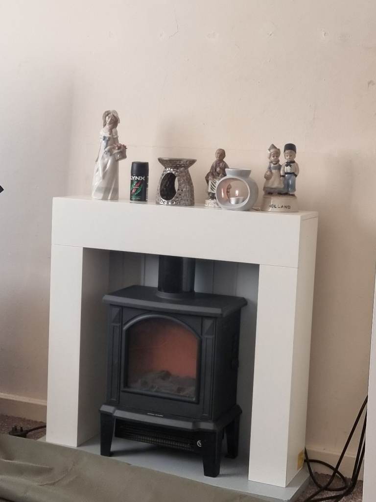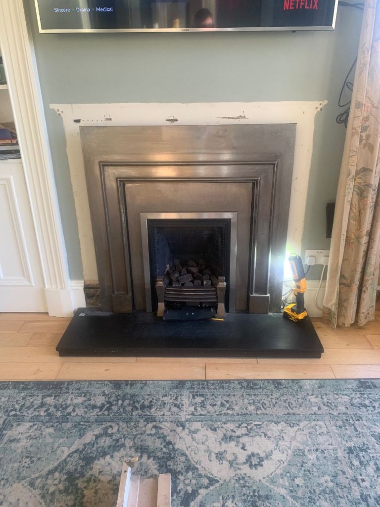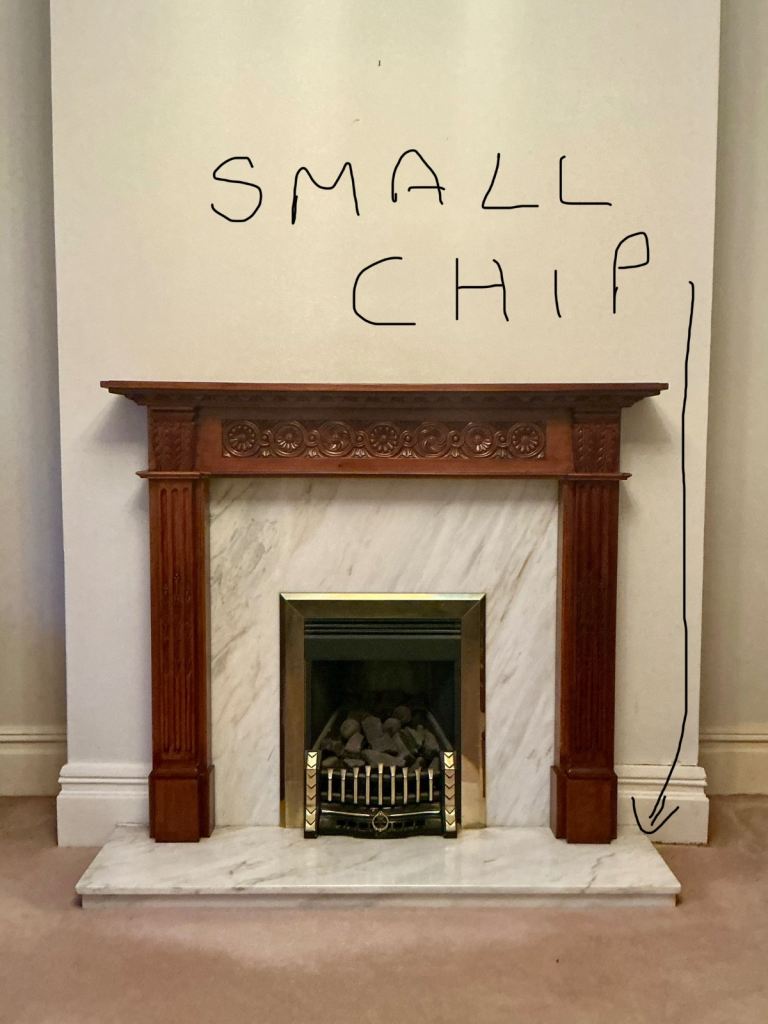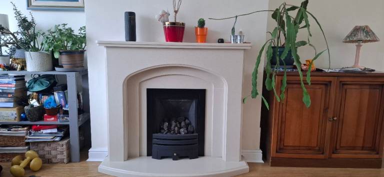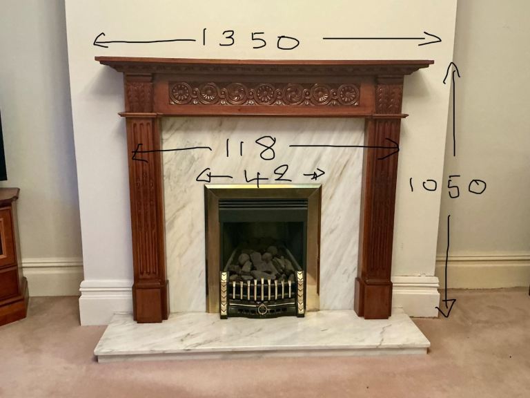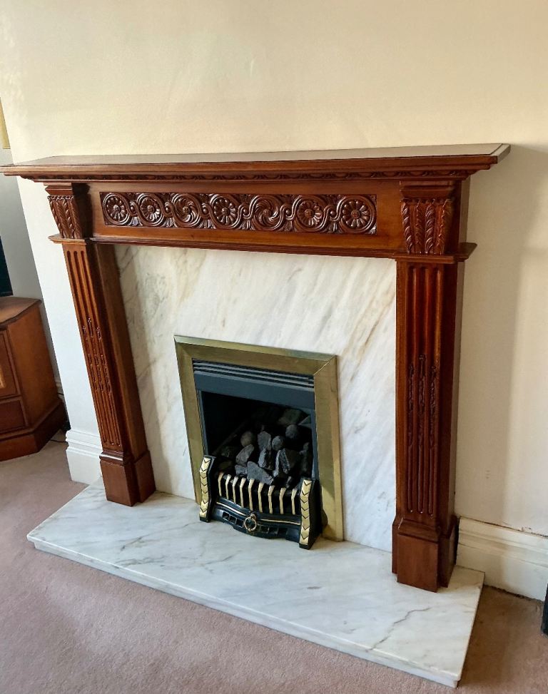 Beautiful Italian marble fireplace with rosewood surround. Already dismantled and ready to be collected. Marble is very heavy and is in very good condition, other than a very small chip on the right hand side (highlighted in pictures). The marble required some tidying up as there is a little plaster still attached at the rear. Gas fire not included and dimensions can be found on pictures.