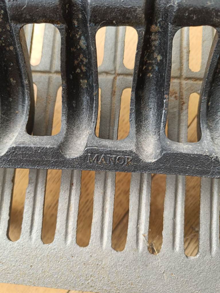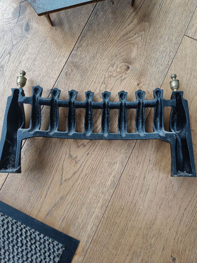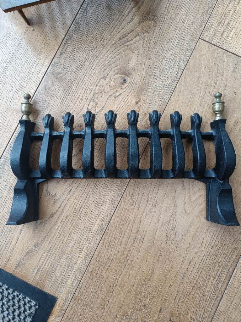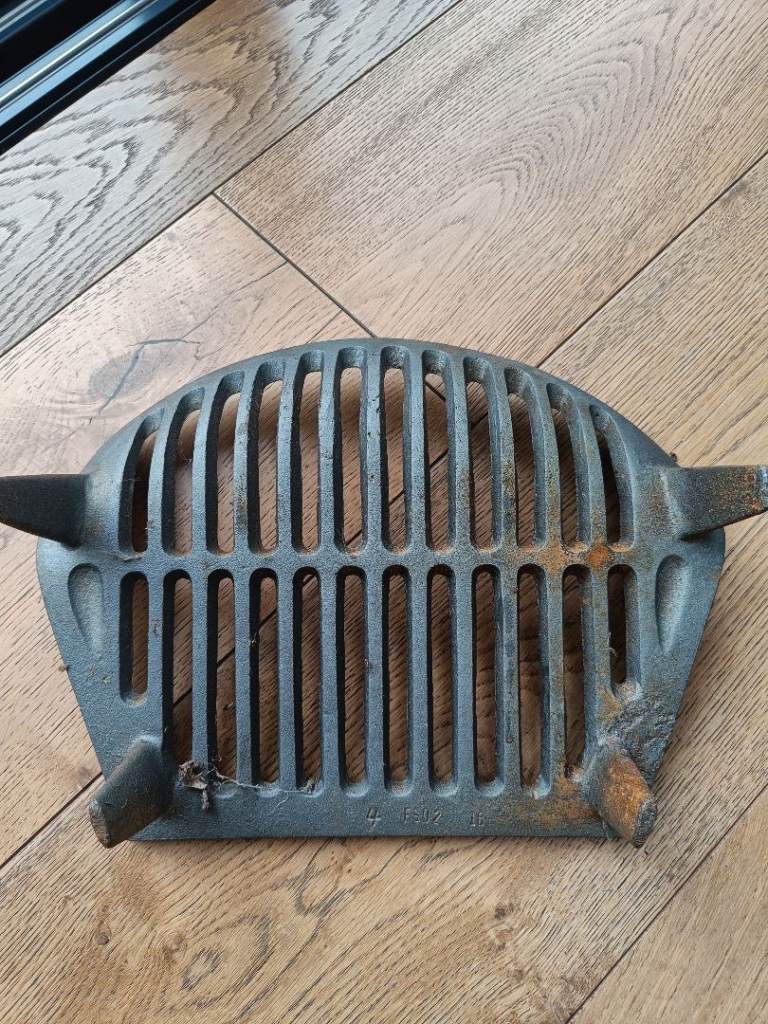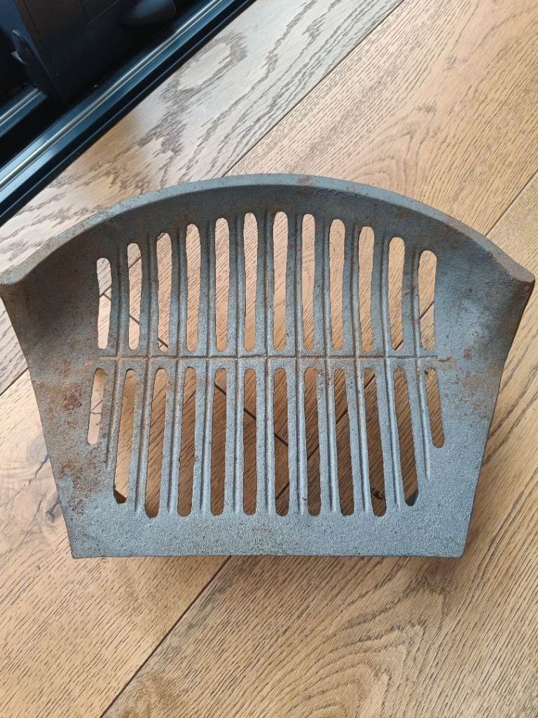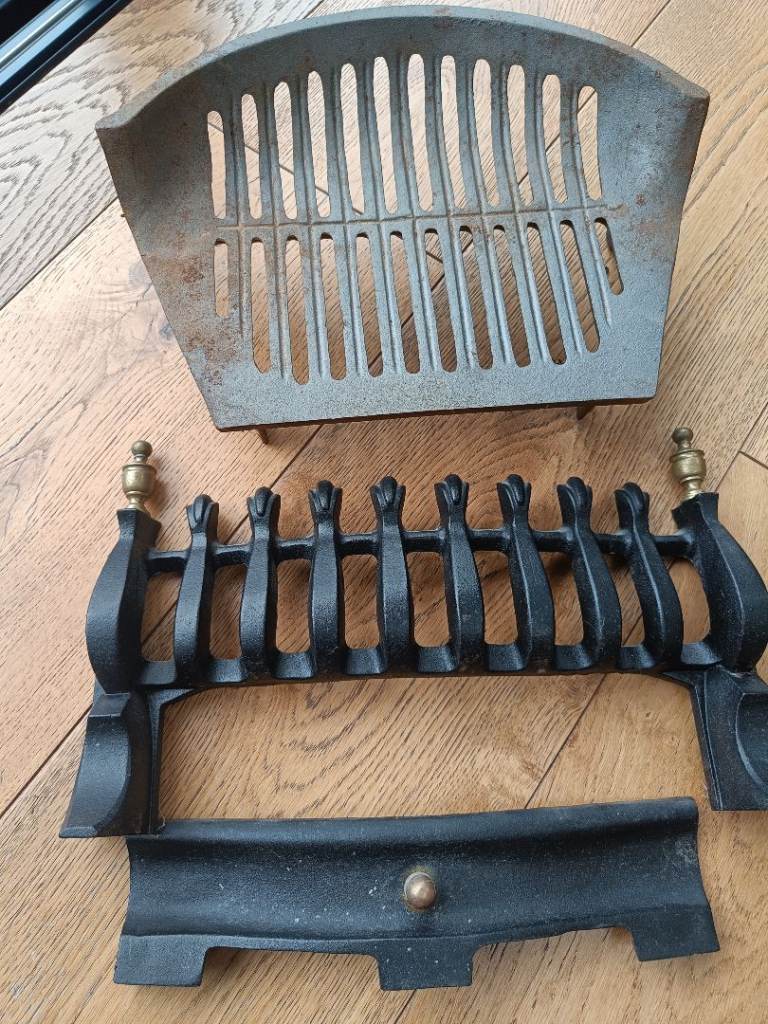 Strong, well-made and ready to use. The fire back shows some surface rust from age and storage, but this is purely cosmetic and can be cleaned or repainted if desired. The grate itself is in very good solid condition.