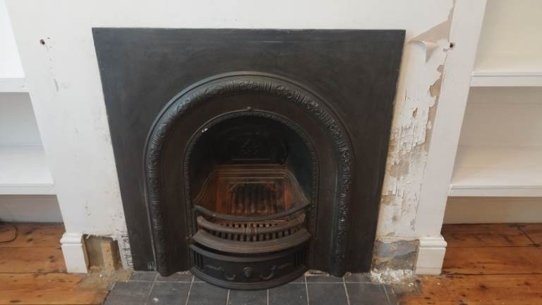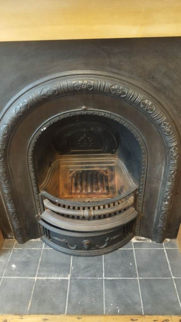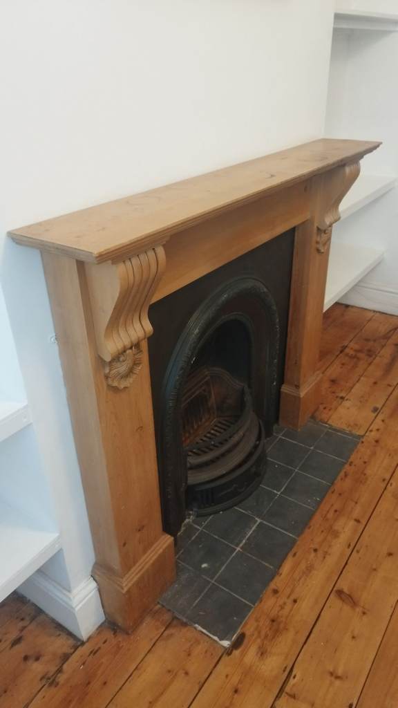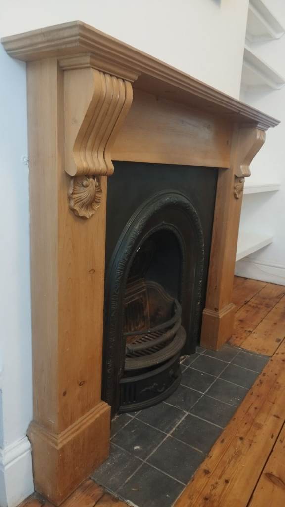 Cast iron victorian fireplace with pine surround