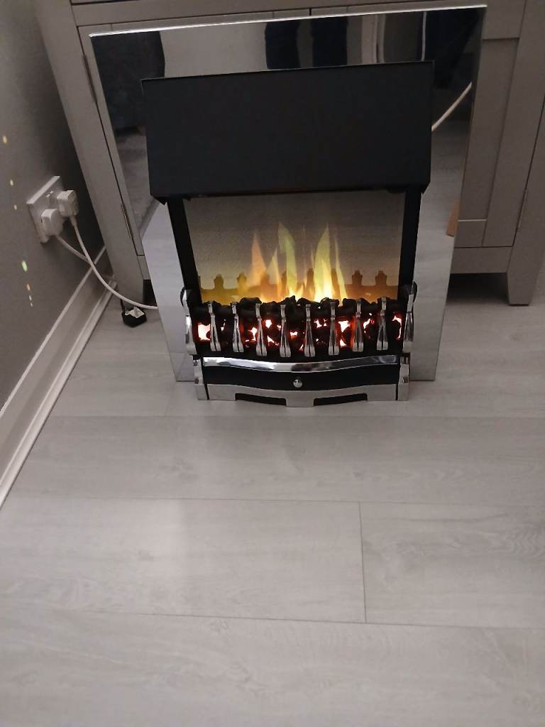 Dimplex Optiflame Electric Inset Fire. Chrome trim and black coals. The fire has only been used for the glow and is in great condition.