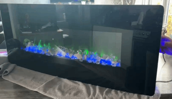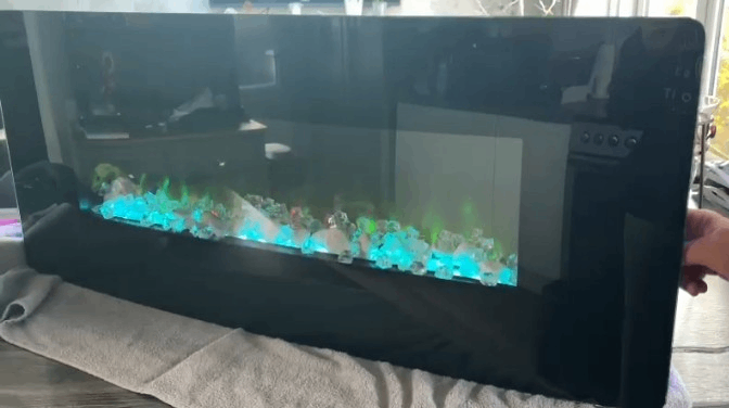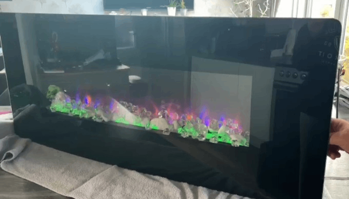 Lovely media wall fire with bracket, around 12 different colour changes ,also different led back lights, crystal glass stones,heat comes from the bottom,has a timer . measurements are 40in x 17in x 6in ,as new condition £65 ono