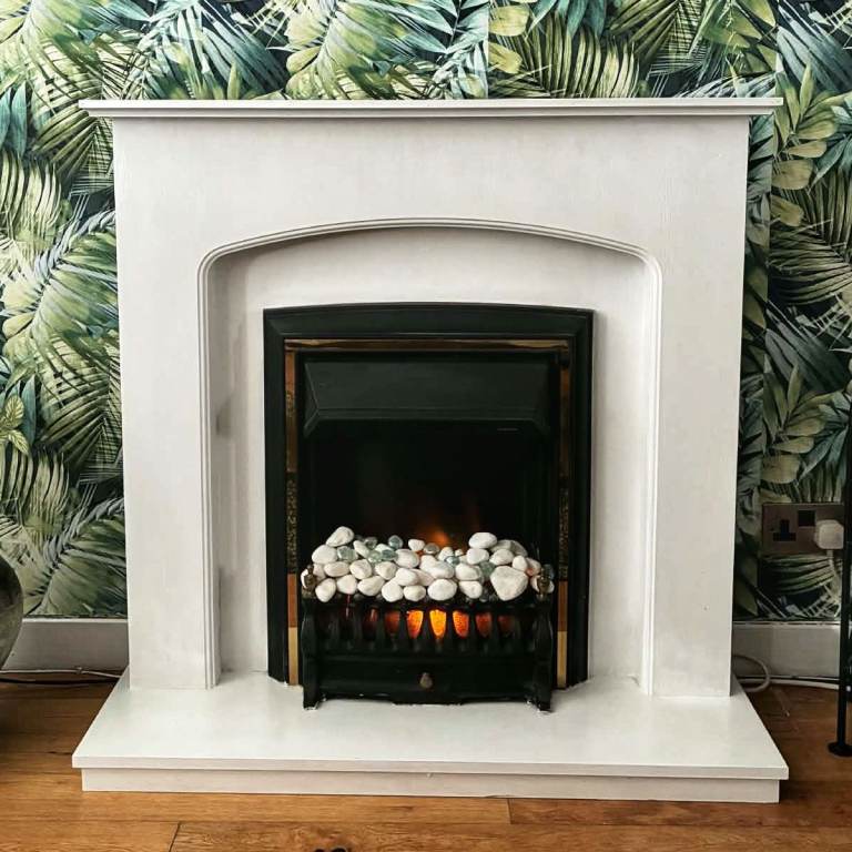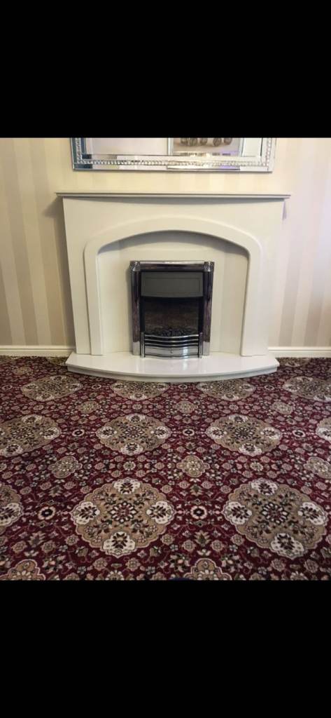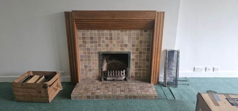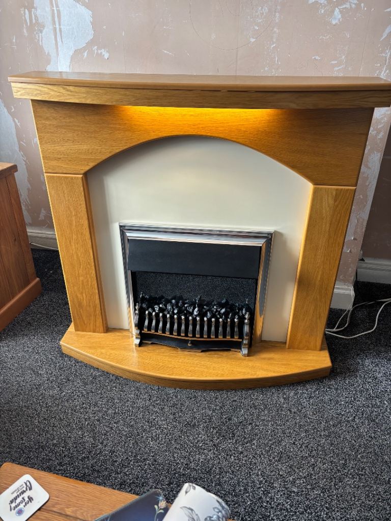 Selling a decorative fireplace complete with surround, insert, and hearth. Features a detailed wooden surround with a classic design – great for a renovation project or feature piece.