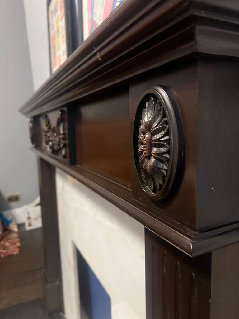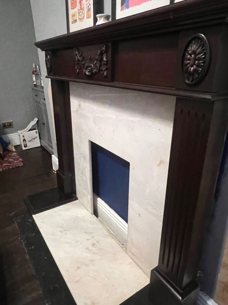 Wooden fire surround with marble backing