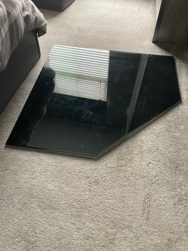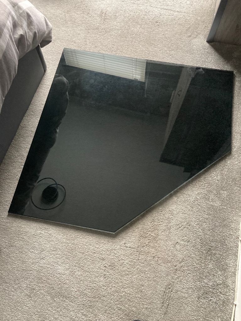 ACR Electric Fire stand/cupboard and smoked glass hearth. Electric fire (not included) sits on top of the stand that sits on the corner hearth. No longer needed as we have moved the fire into an alcove. Immaculate condition £60 for quick sale.